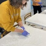 U prvom dijelu učili su kako pripremiti pastu, a zatim su vježbali tehniku i radili na skicama. Nakon toga ideje su, koristeći razne špatule i priručne alatke, prenosili na velika platna.