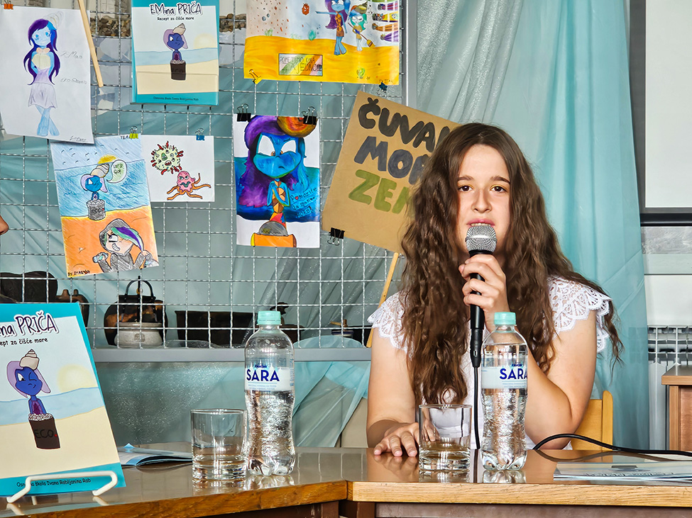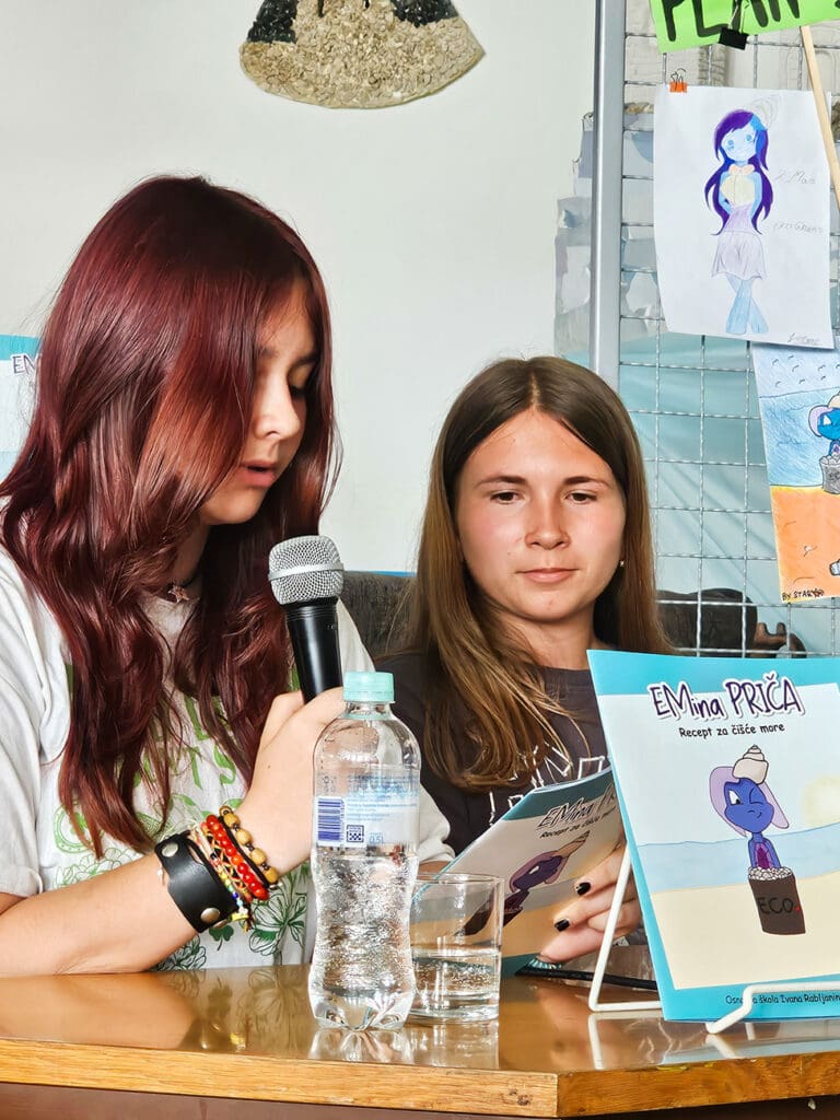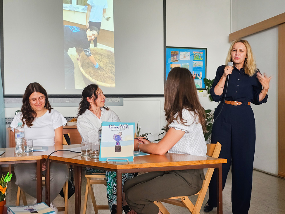 Slikovnicu su predstavile učiteljice Ivane Rimac, urednica slikovnice i voditeljica Ekoskupine, Doris Ćuća-Žentil, također voditeljica Ekoskupine, a svoje iskustvo rada na slikovnici podijelile su i učenice Lorena Krstačić koja je sada učenica 3. razreda srednje škole Markantuna de Dominisa Rab, Petra Lucija Španjol, učenica 7. r. i Maja Ahmetbašić, učenica 6. r.