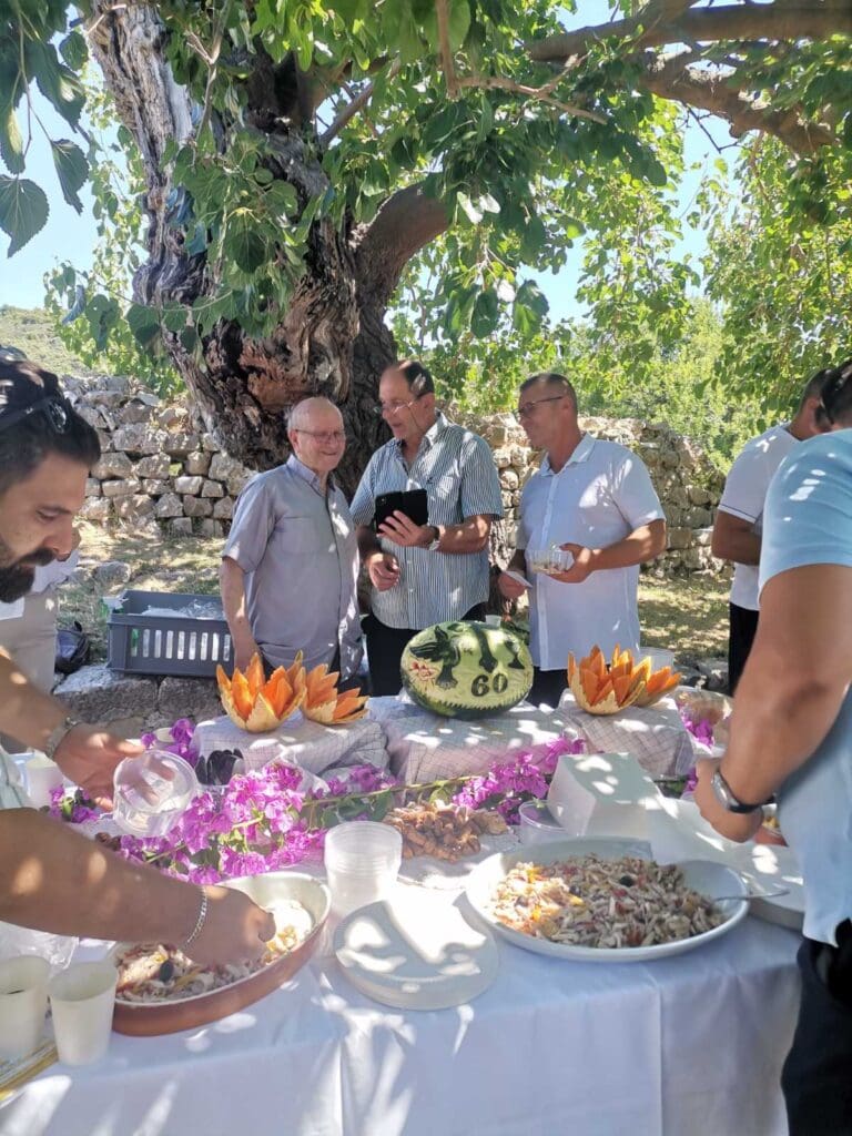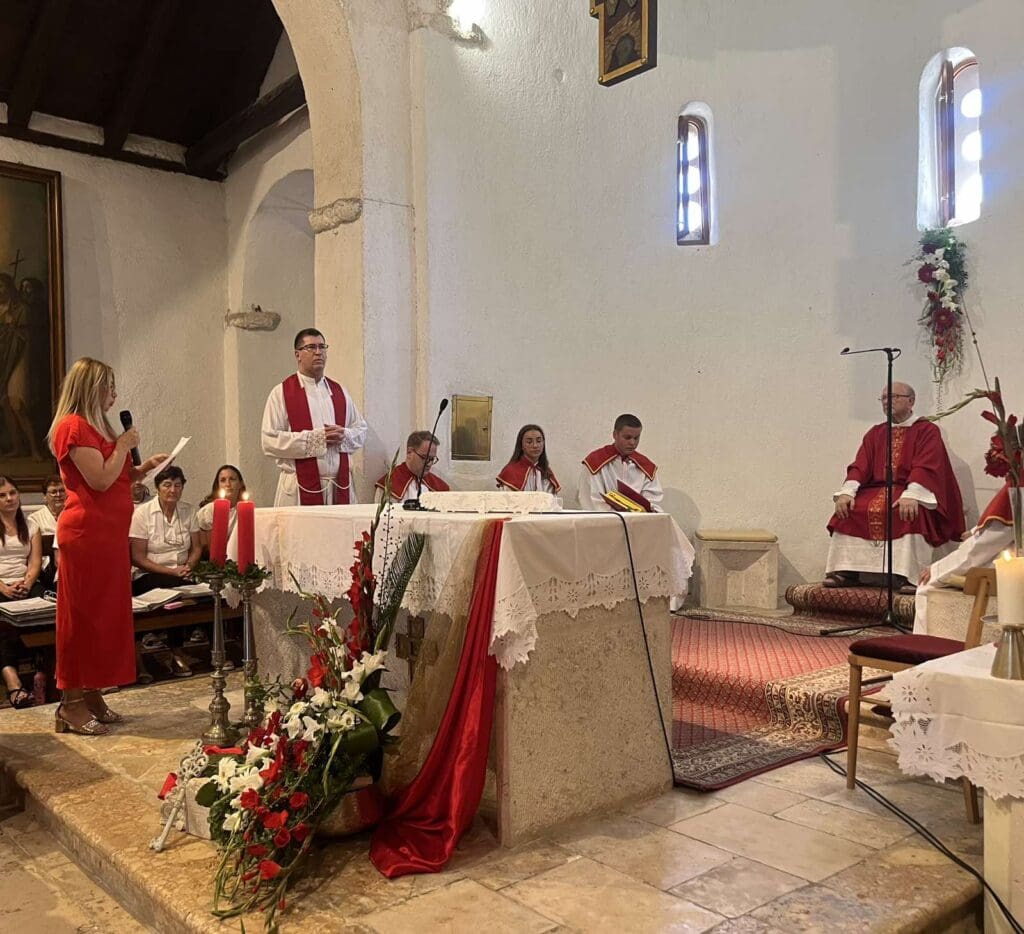 Nakon toga su župljani Vinko Čipčić i Zdravko Šajbić vlč. Peru uručili prigodan poklon u vidu slika kao znak poštovanja i zahvalnosti. Cijelu je svečanost pratio i uzveličao crkveni zbor, a nakon duhovne gozbe u dvorištu crkve nastavljeno je druženje uz slatko-slane delicije u organizaciji udruge Tunera.