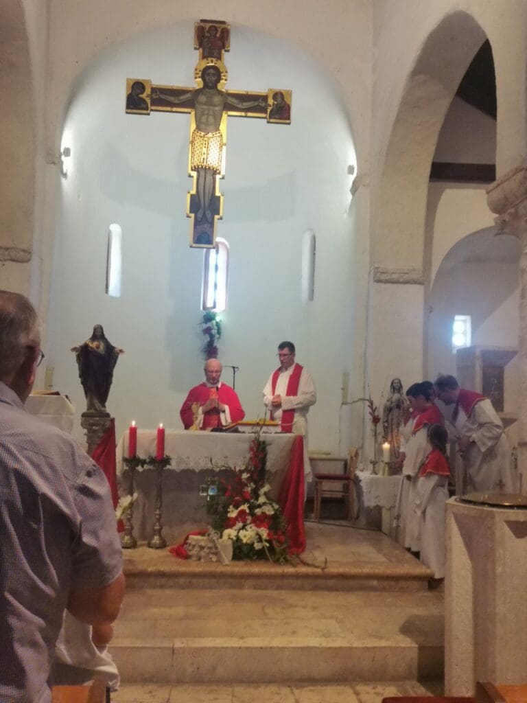 Osvrnuvši se na pročitani ulomak iz Evanđelja, naglasio je: “Neprijatelj se i danas silno trudi da razapne tu Ljubav na križ. Na razne načine pokušava prekinute naše zajedništvo  s Bogom. S križa je Crkva i rođena, iz probodena Isusova boka… Isus je rekao učenicima, a prvom sv. Petru da krste sve u ime Oca i Sina i Duha Svetoga i učine sve Njegovim učenicima… Sv. Petar je bio jednostavan i imao je srce i zato ga je Gospodin stavio da bude prvi među jednakima, da služi, da bude na raspolaganju Bogu i čovjeku. U to ime smo se danas i okupili…”.