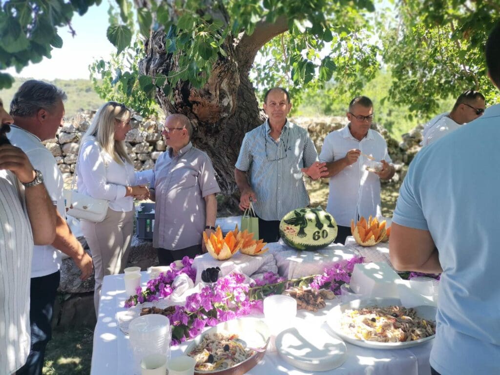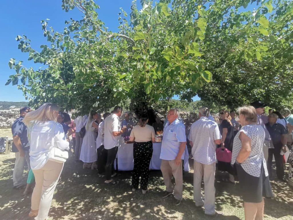 Nakon toga su župljani Vinko Čipčić i Zdravko Šajbić vlč. Peru uručili prigodan poklon u vidu slika kao znak poštovanja i zahvalnosti. Cijelu je svečanost pratio i uzveličao crkveni zbor, a nakon duhovne gozbe u dvorištu crkve nastavljeno je druženje uz slatko-slane delicije u organizaciji udruge Tunera.
