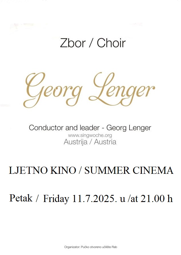 U petak, 11. srpnja 2025. s početkom u 21:00 sat na pozornici Ljetnog kina Raba nastupa renomirani zbor iz Beča pod ravnanjem maestra Georga Lengera.