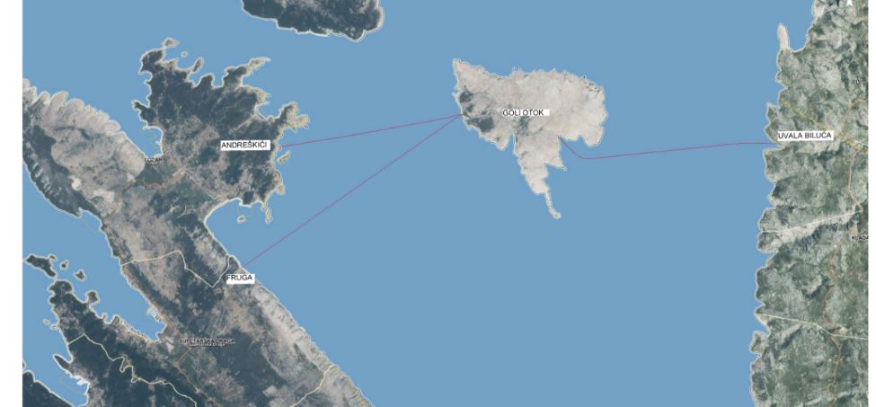 Radi se o tri 20 kV kabelske veze. Prve dvije su Uvala Fruga – Goli Otok – Uvala Biluća, ukupne dužine 11 km, izgrađene kao 35 kV kabelska veza još 1964. godine, a treća je kabelska veza Andreškići (uvala Stolac) – Goli Otok, dužine 4 km, izgrađena 1979. godine.