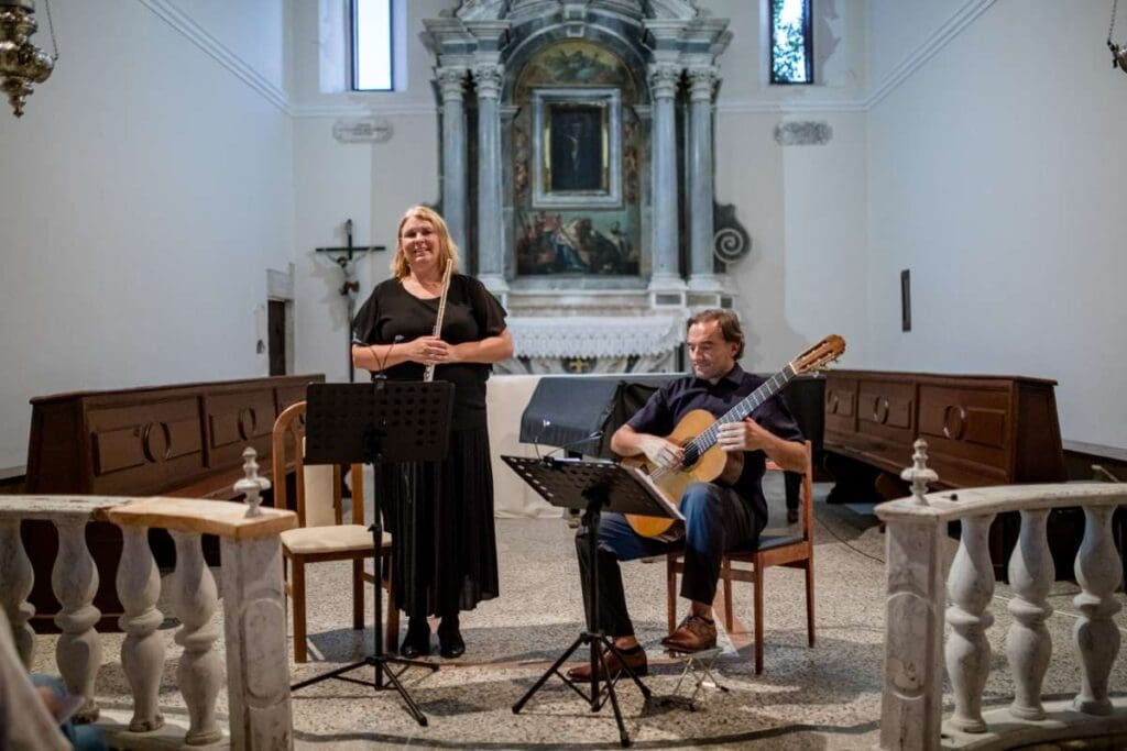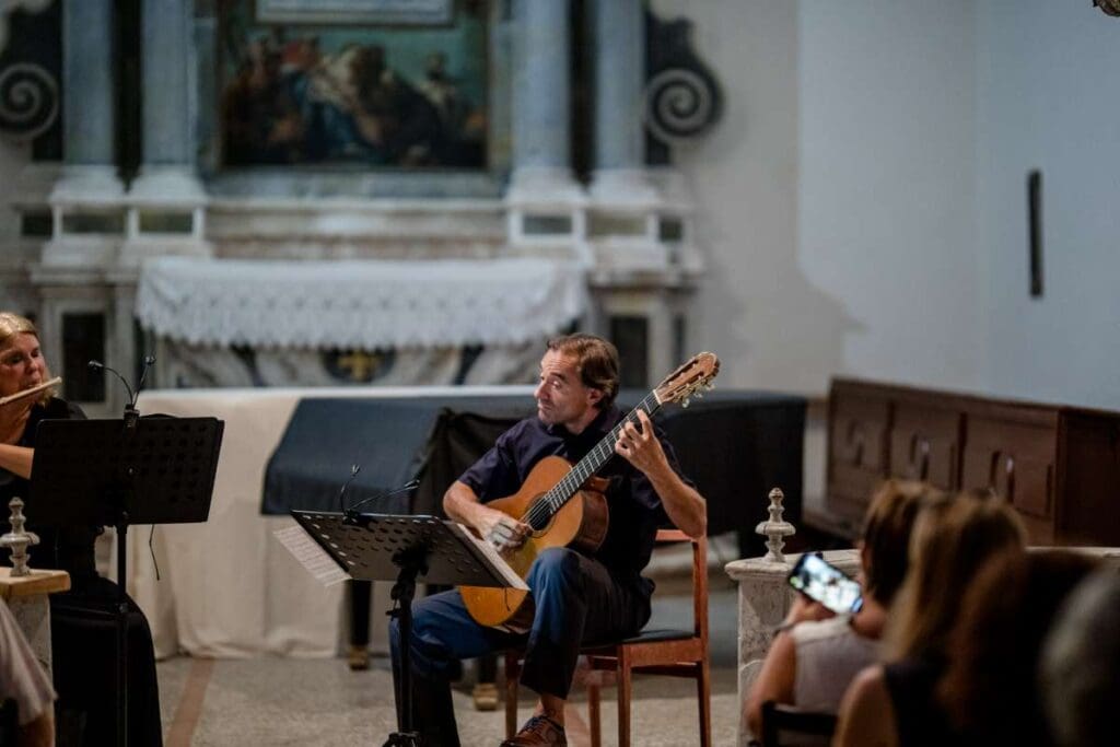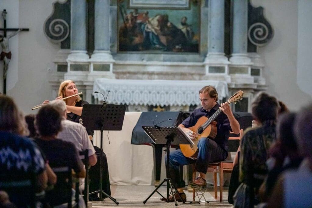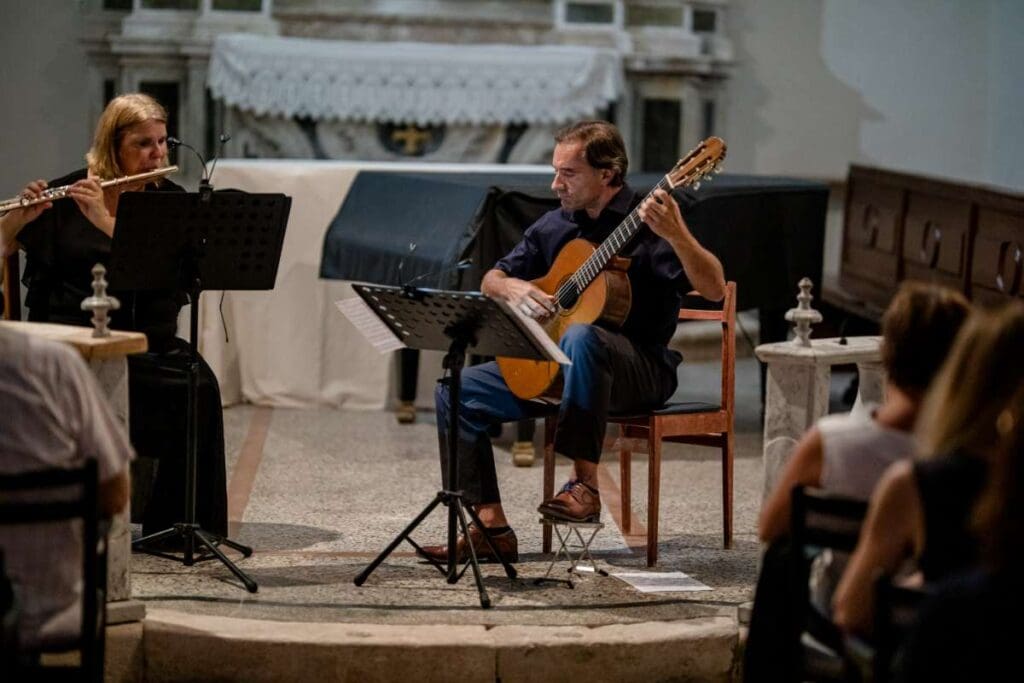 U sklopu jubilarnog 40. izdanja Rapskih glazbenih večeri, u četvrtak 10. srpnja 2025., u crkvi sv. Križa publika je imala priliku uživati u nadahnjujućem koncertu instrumentalnog dua – gitariste Viktora Vidovića i flautistice Ivane Zahirović-Negrerie.