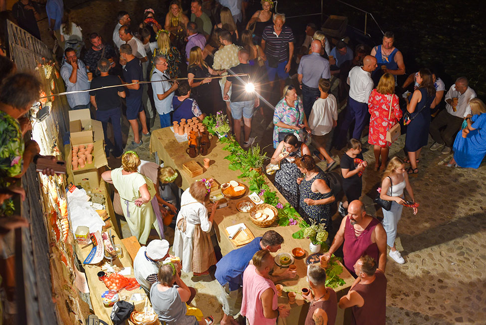 Zrakom se širi miris svježe prženih šulčića, dok na plaži niče cijelo ribarsko selo. Ulice odzvanjaju pjesmom i glazbom dok se prolaznicima nude tuna, fritule, sir i vino.