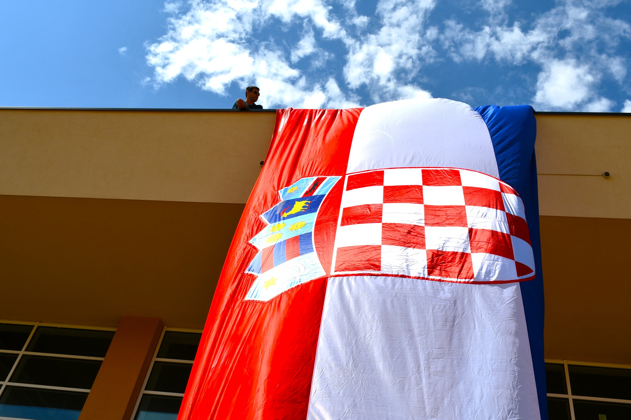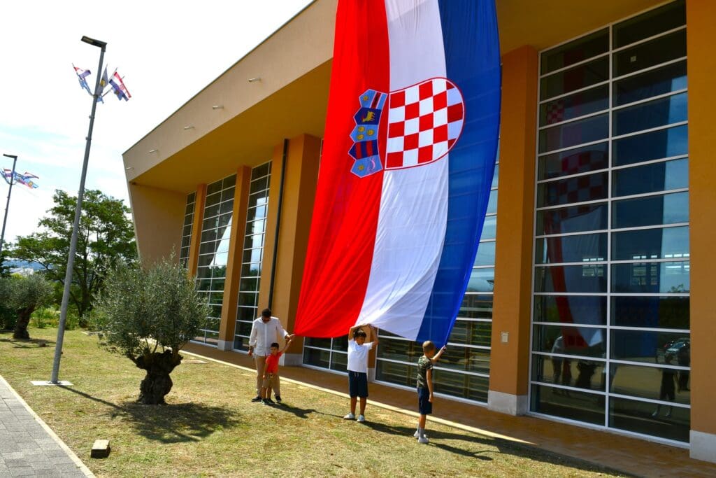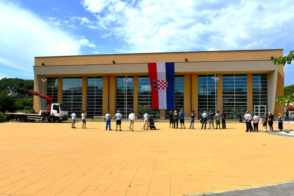 Uoči obilježavanja VRO-a “Oluja” na Dvoranskom trgu u Loparu izvješena velika hrvatska zastava