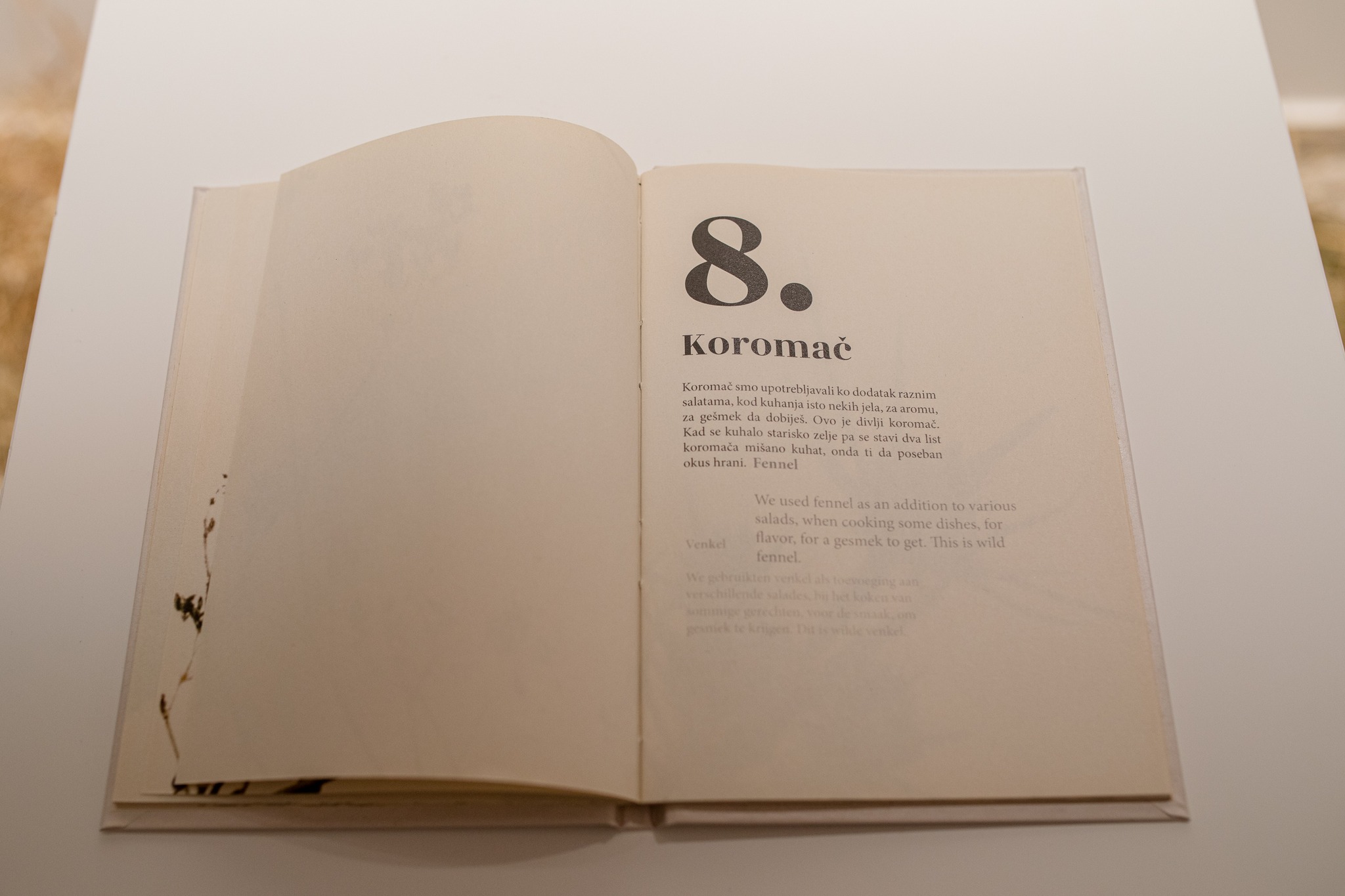 Kustosica Sabrina Žigo na otvorenju je spomenula kako je prikladniji naziv izložbe onaj na engleskom – In Between (u hrv. prijevodu “Između”), jer kad se umjetnica preselila u Nizozemsku, problem je bio nepoznavanje nizozemskog jezika, i iznalazila je razne načine svojeg izražavanja u svakodnevnoj komunikaciji, ali i svojeg umjetničkog jezika. I taj problem jezika je postao glavni inspiracijski motiv njenog umjetničkog koncepta. Ono što je objedinila u ovoj instalaciji je njen rodni i stečeni zavičaj.
