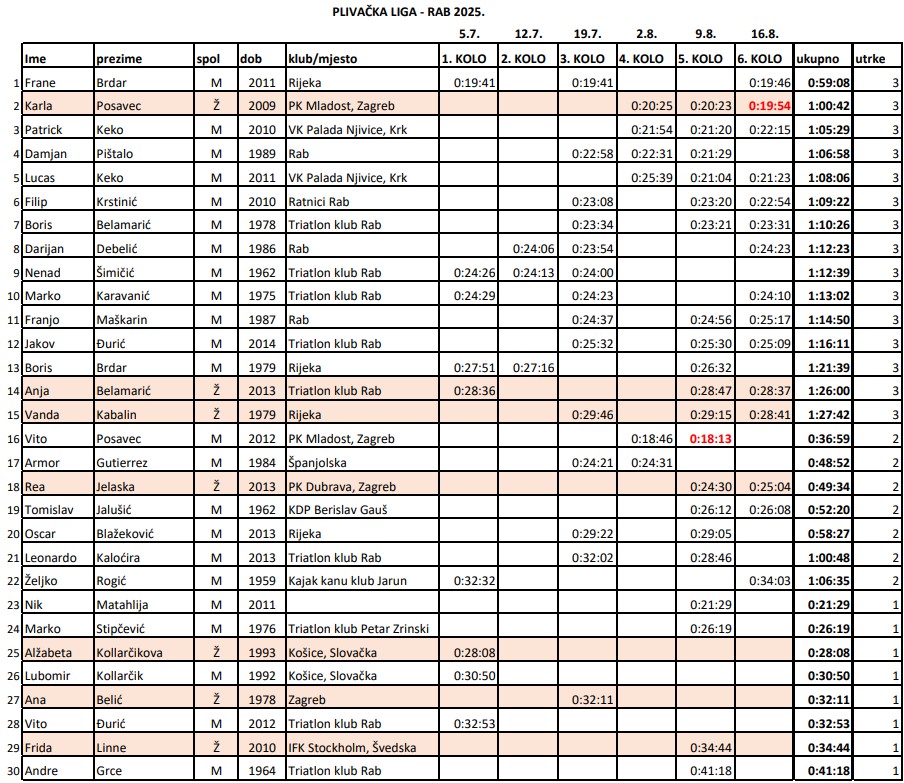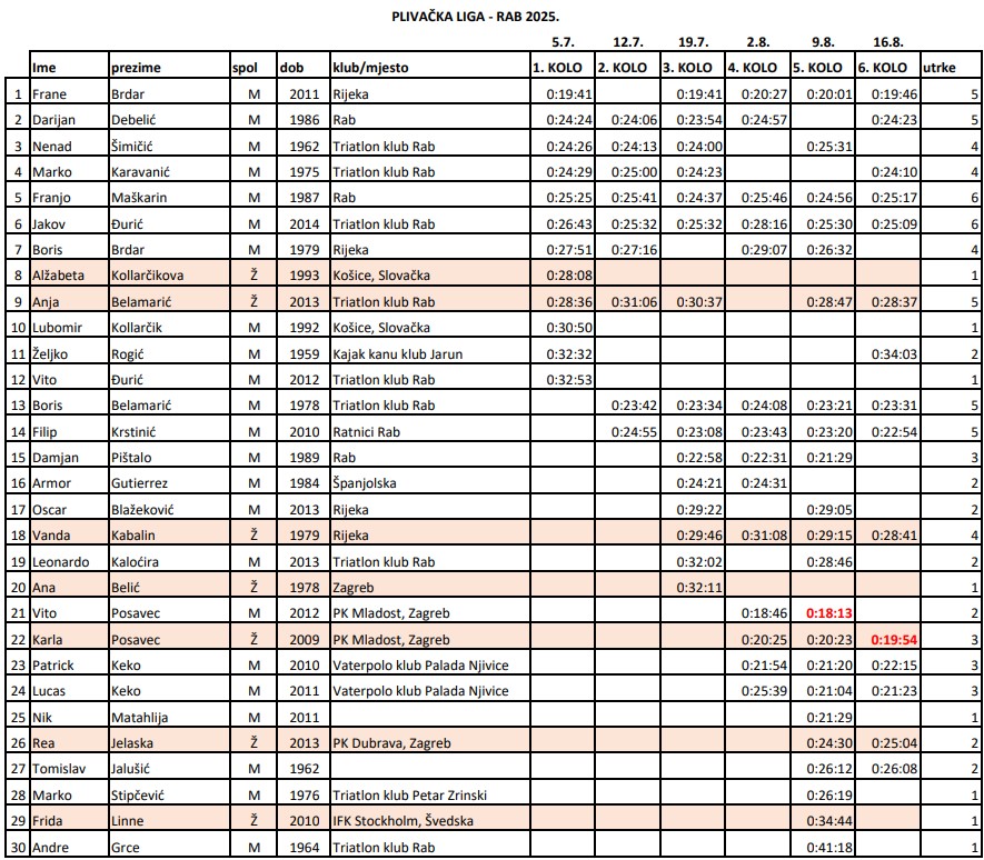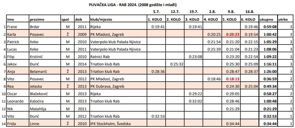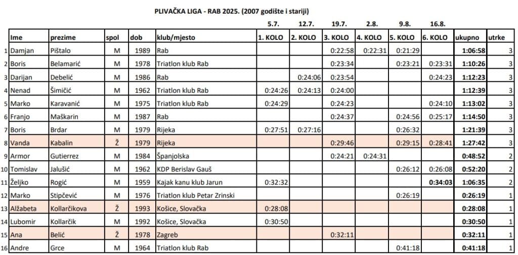 Osvrt na Plivačku ligu Rab 2025 – brojke govore sve!