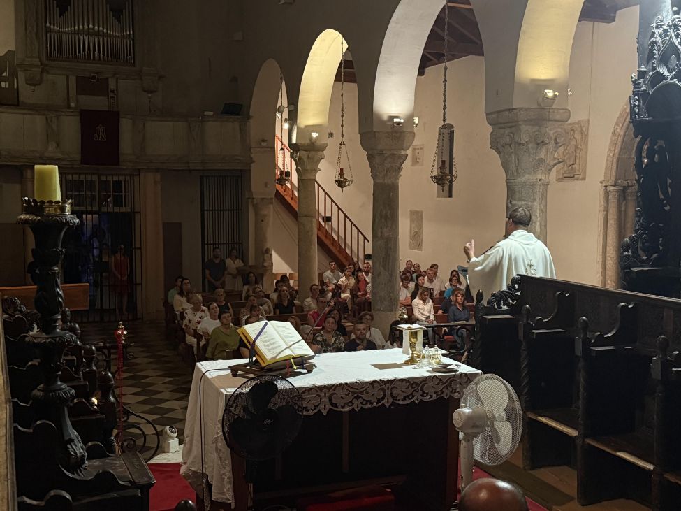 Dana 20. kolovoza 2025. godine u katedrali Uznesenja Blažene Djevice Marije na Rabu održana je duhovna obnova pod naslovom „Dvije zastave“, koju je predvodio vlč. Saša Malović, župnik Župe sv. Petra apostola u Supetarskoj Dragi.