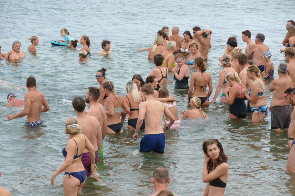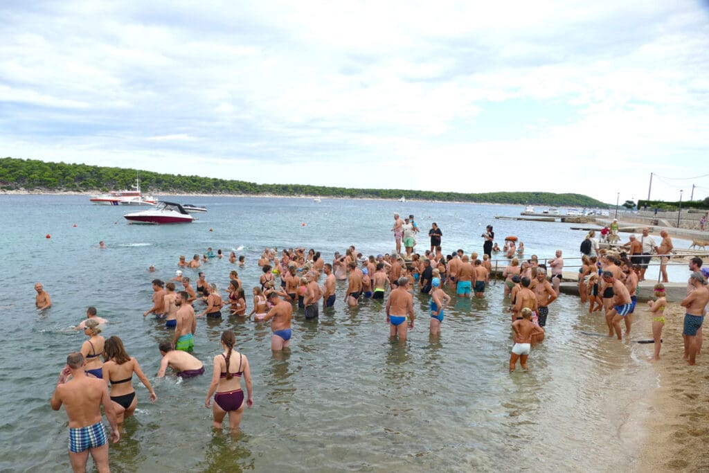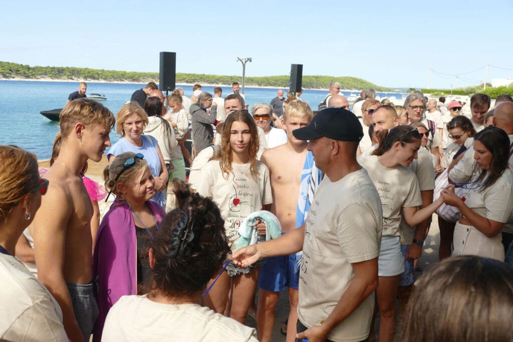Mjesto sastanka je već tradicionalno bio beach bar Puntica na Vodenči, a polazna točka – mala plaža ispod njega. Na startu su se našli ljudi svih generacija, od najmlađih do najstarijih, njih blizu 80-ak, svi povezani zajedničkim (humanitarnim) ciljem.