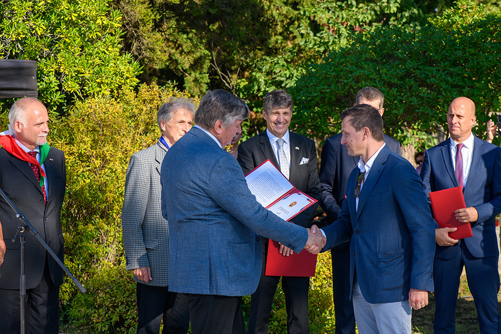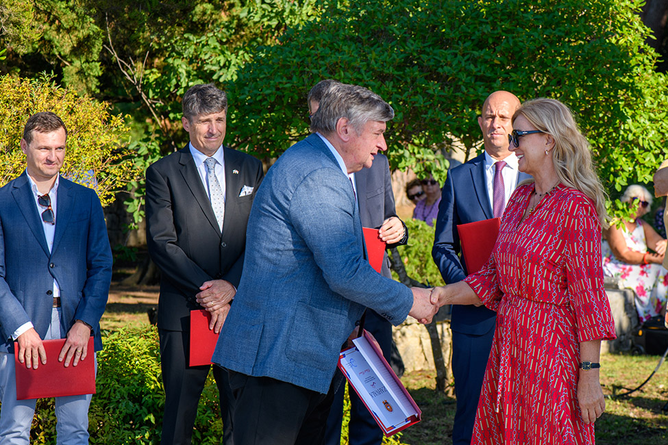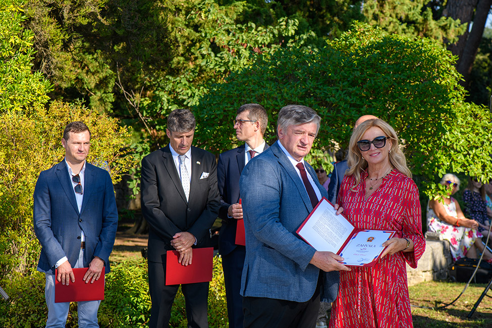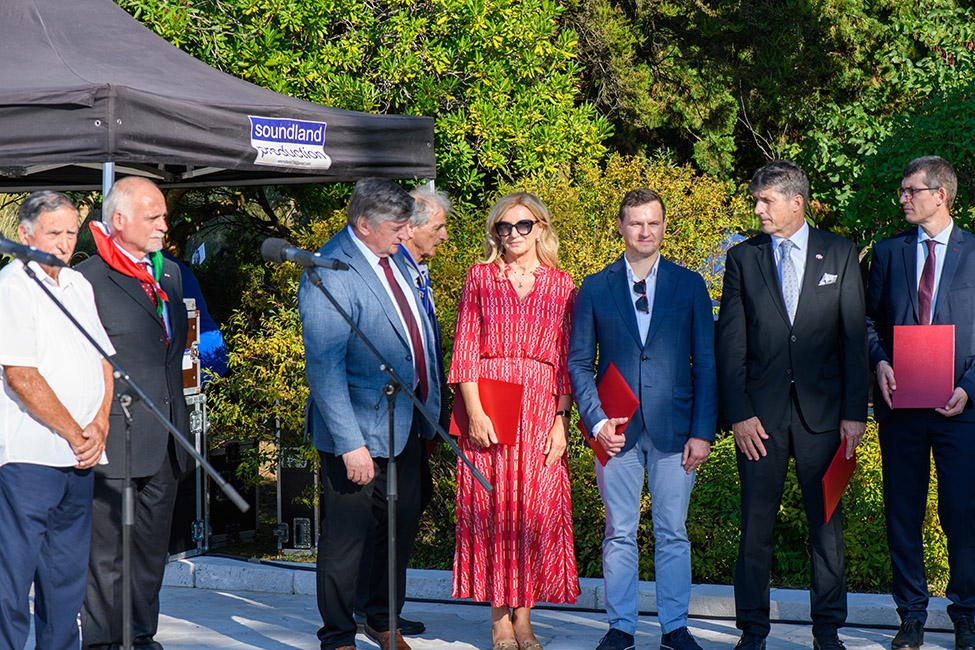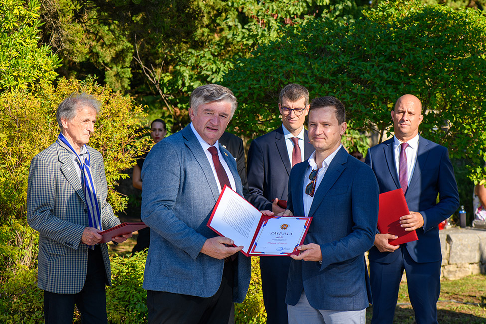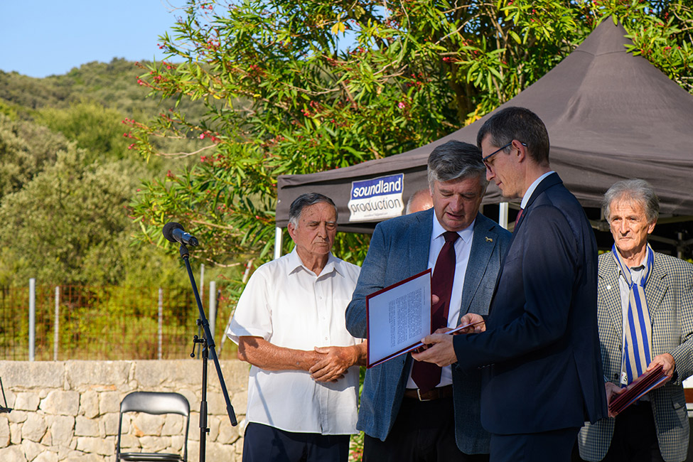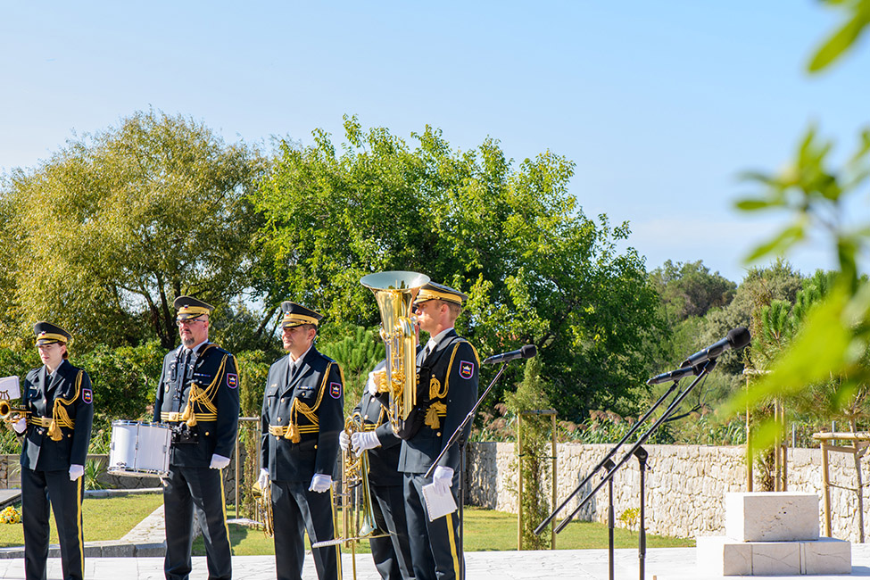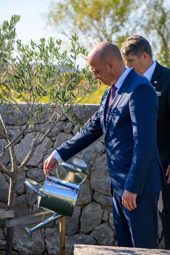 U znak zajedništva i trajnog sjećanja, maslinu u parku simbolično su zalili slovenski ministar obrane Borut Sajovic i gradonačelnik Grada Raba Nikola Grgurić. Za doprinos obnovi posebne zasluge i priznanje idu ministru Sajovicu, veleposlaniku Slovenije u Zagrebu Gašperu Dovžanu, gradonačelniku Grguriću i drugim zaslužnima.