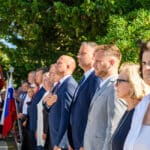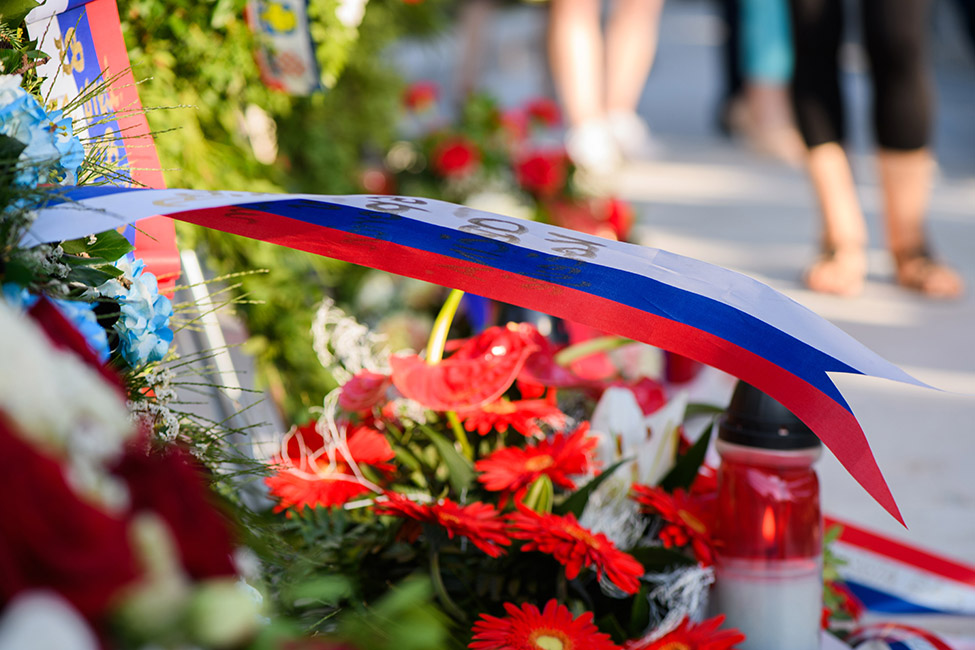 Nakon polaganja vijenaca, gradonačelnik Nikola Grgurić pozvao je okupljene da minutom šutnje odaju počast svim stradalima, a potom su intonirane tri himne – hrvatska, slovenska i europska.
