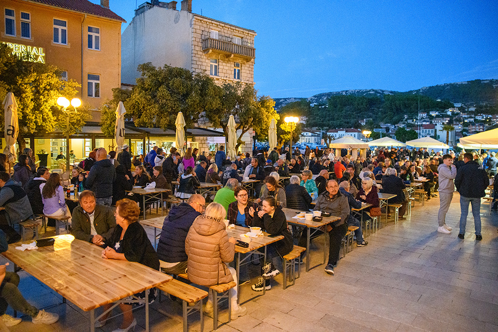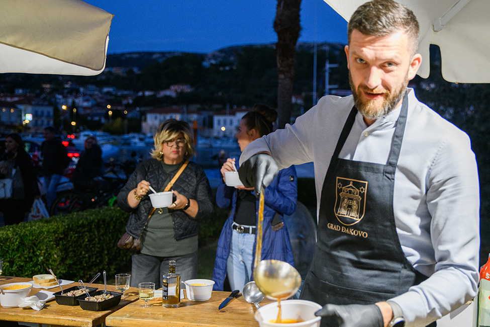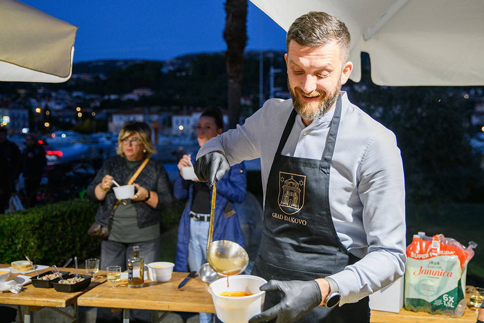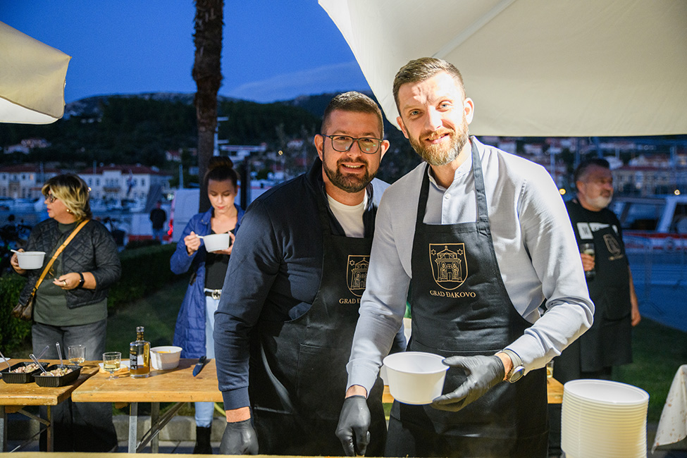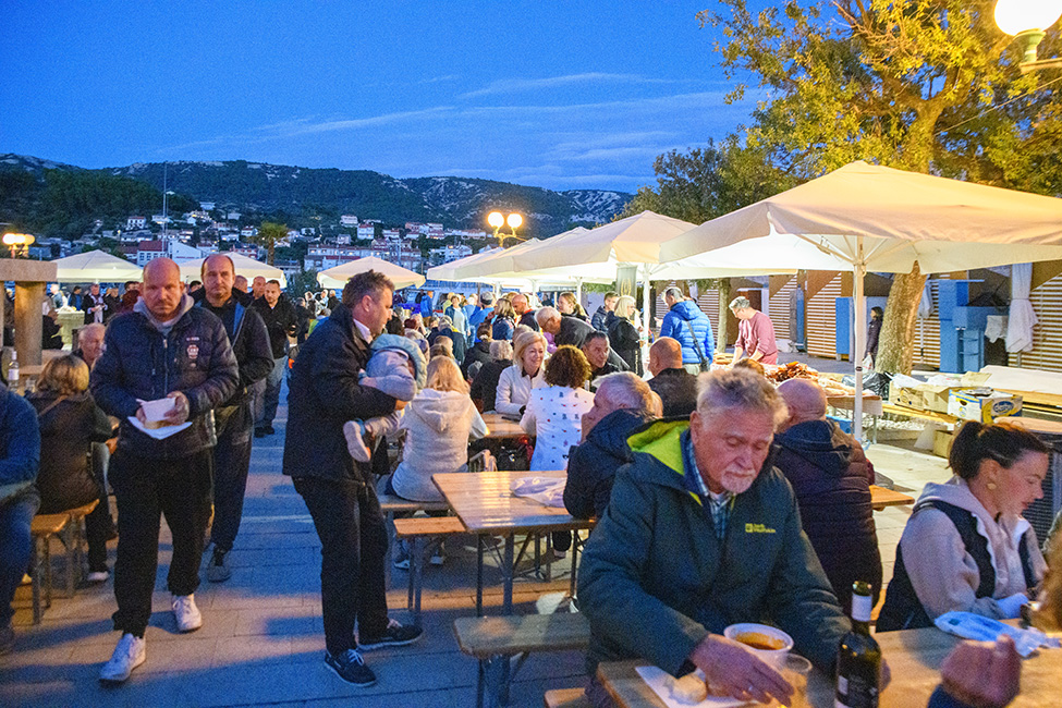 Posebnu pažnju posjetitelja privuklo je i poslijepodnevno druženje uz čobanac, koji se kuhao u velikim kotlićima i širio zavodljiv miris cijelim trgom. Uz đakovačke specijalitete, članovi lokalnih udruga ŠRK Dolin, DSR Kampor i SRK Tunera pobrinuli su se da nitko ne ostane gladan – dijelili su tradicionalne rapske specijalitete, čime je spoj mora i ravnice dobio svoj najukusniji oblik.