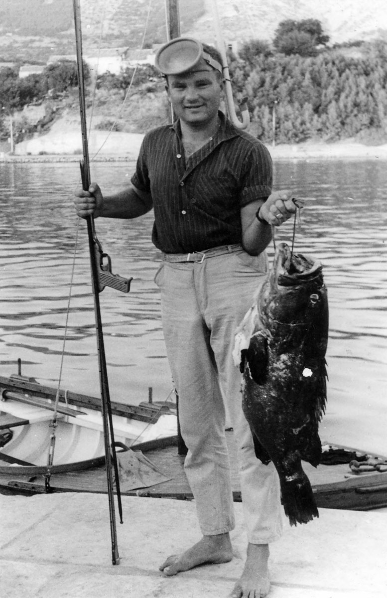 Kuntrivan ja jednoga jutra Pera Sandalića. Dočim me je šerval latil se je za svoju velu torbu, znel je van sliku i jada mi se kako je još prije četrdeset godin latil na pušku jednu velu kirnju. Ma riba od desetak kili. Ali, njigova kumpanija od Grada to da mu ni dan danas ne prizna. Hitil san oko va tu sliku i je: na slici Pere od mladih dan, vela duga puška i ta vela riba va ruci.