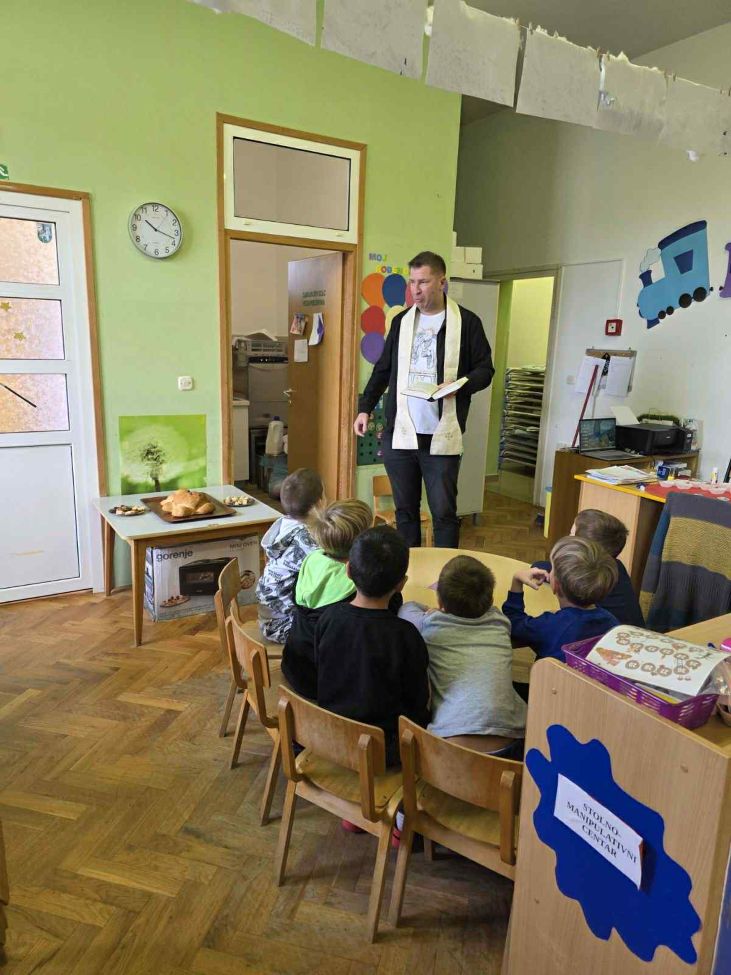 Vrtić je bio ispunjen mirisima i toplinom tijekom Dana kruha i zahvalnosti za plodove zemlje, kada su se djeci pridružile i bake, donoseći domaće pekarske proizvode. Ususret ovom danu, vrtić i prigodne kolačiće blagoslovio je vlč. Saša Malović.