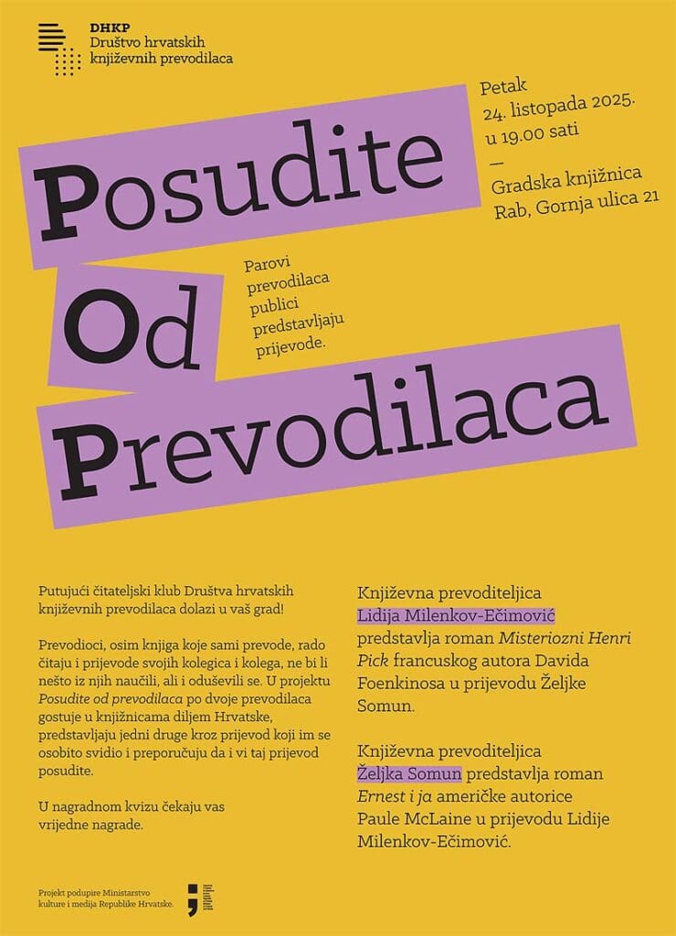 Projekt “Posudite od prevodilaca” putuje knjižnicama diljem Hrvatske, a podržava ga Ministarstvo kulture i medija Republike Hrvatske.
