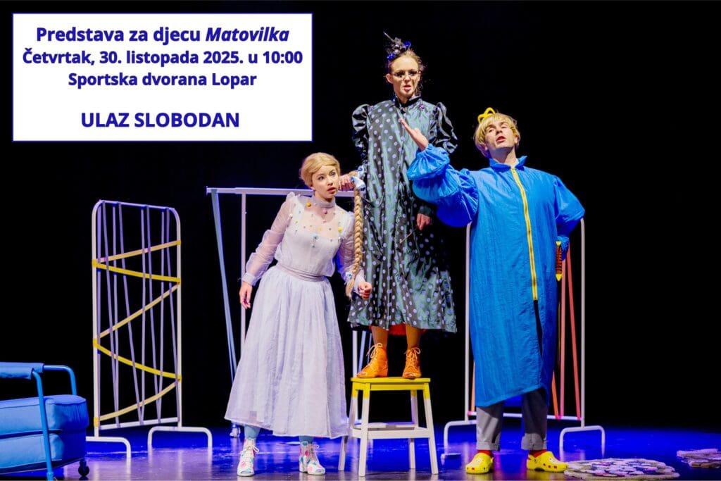 U izvedbi kazališta “Smješko”, u četvrtak, 30. listopada, s početkom u 10 sati, u Sportskoj dvorani Lopar, održat će se predstava za djecu Matovilka. Ulaz je slobodan.