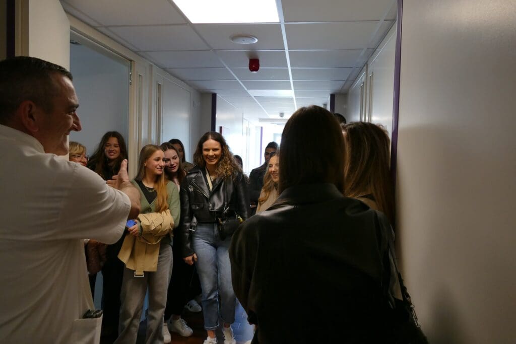 Nakon uvodnih riječi dobrodošlice ravnateljice prof. dr. sc. Vesne Šendula-Jengić, učenici su u pratnji djelatnika obišli Bolnicu i detaljnije se upoznali s njenom organizacijom te specifičnostima rada i pristupa pacijentu. Posebno je naglašena važnost uloge medicinskih sestara i tehničara u našem multiprofesionalnom timu koji, uz djelatnike zdravstvenih struka, čine i druga suradna zanimanja.