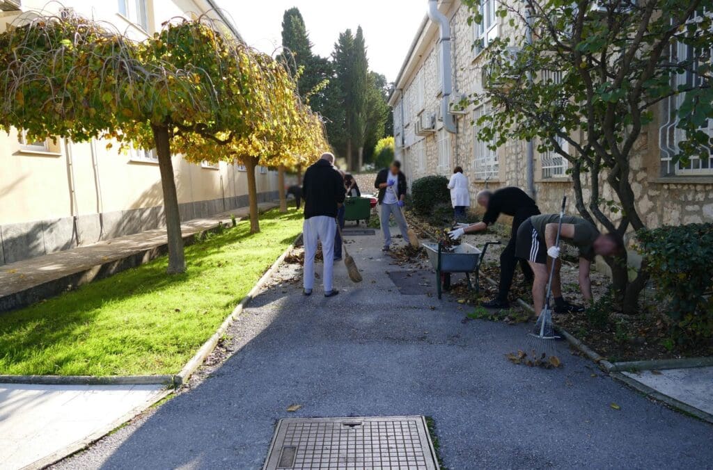 Uz podršku terapeuta i djelatnika Tehničko-servisne službe tridesetak sudionika, koji su se samostalno prijavili, sudjelovalo je u grabljanju, skupljanju otpalog lišća i zaostalih otpadaka, čupanju trave i drugim poslovima.