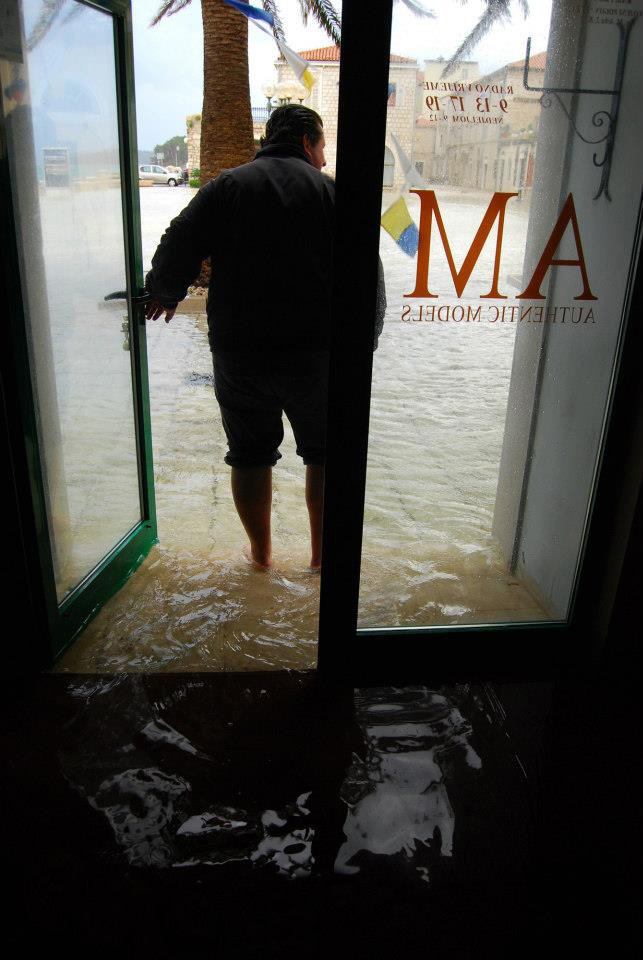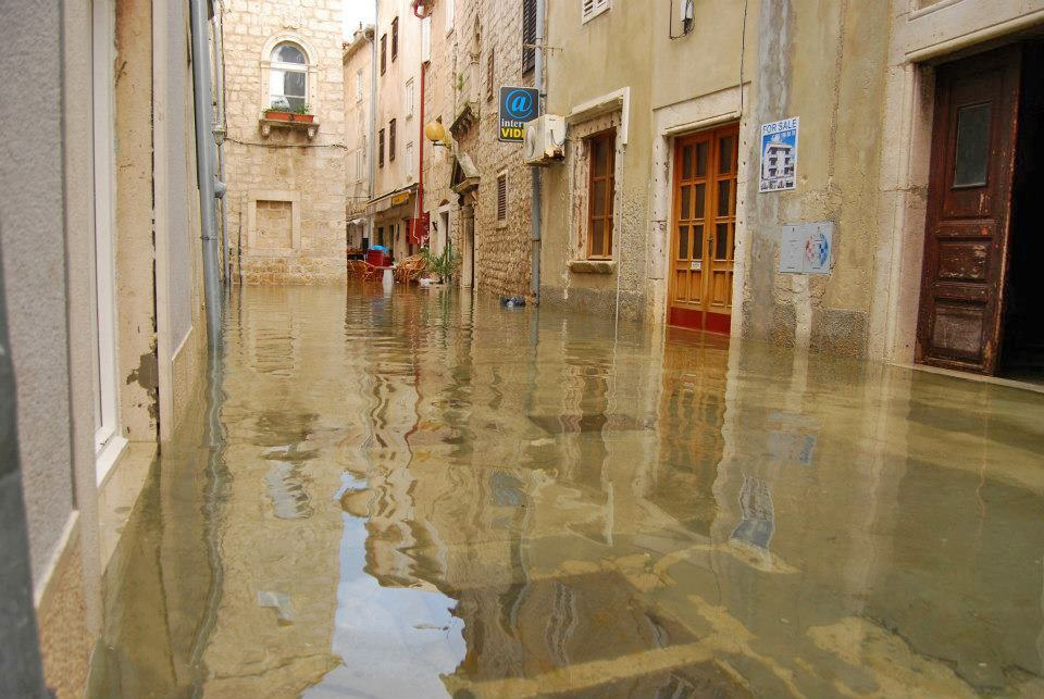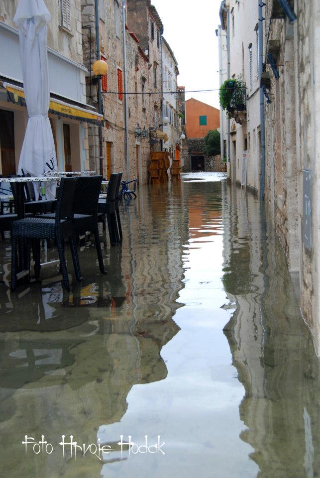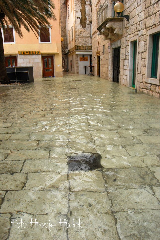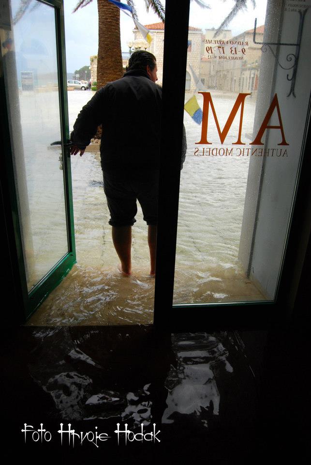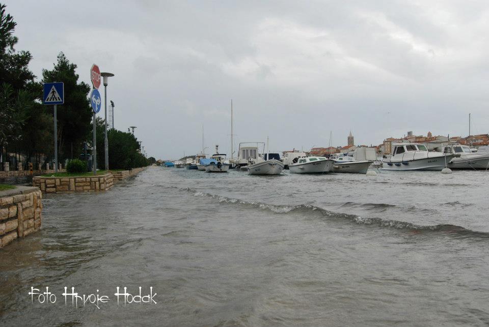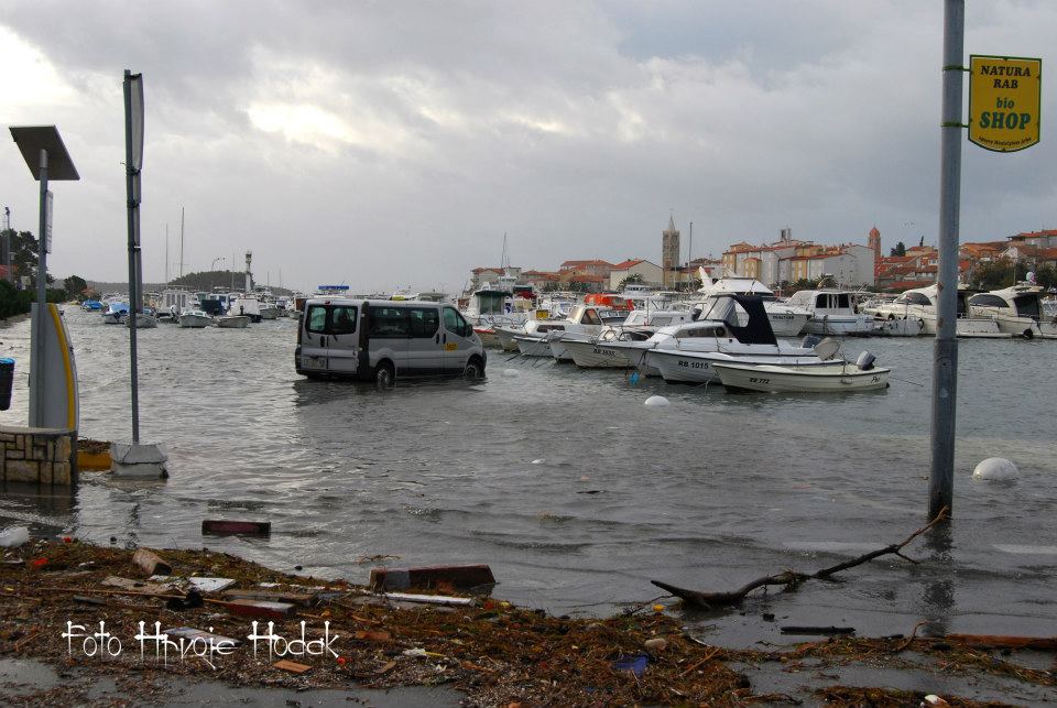 RAB – Blagdansko jutro, 1. studenog na Rabu, nakon olujnog juga, osvanulo je u znaku rijetko viđene plime koja je u velikoj mjeri “potopila” i dijelove staroga grada, nanijevši pritom i velike štete, prvenstveno ugostiteljima i trgovcima koji svoje objekte imaju u blizini rive i u rapskoj Donjoj ulici. Ovakvu razinu plime koja je svoj vrhunac dosegla negdje oko 4 sata ujutro, ne pamte ni najstariji mještani.