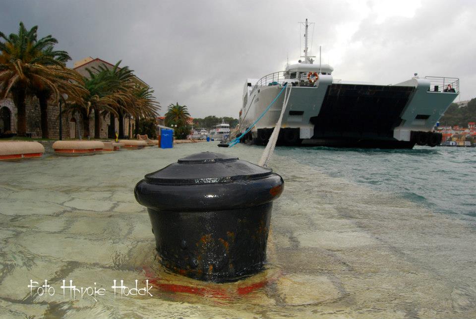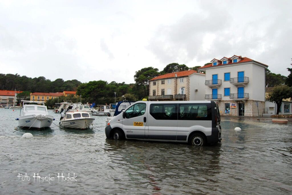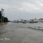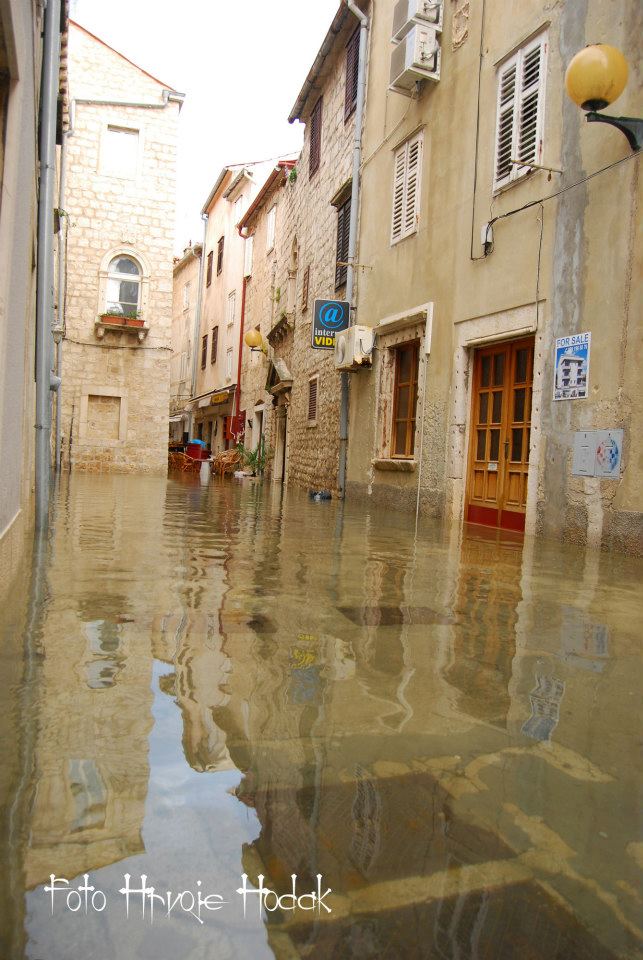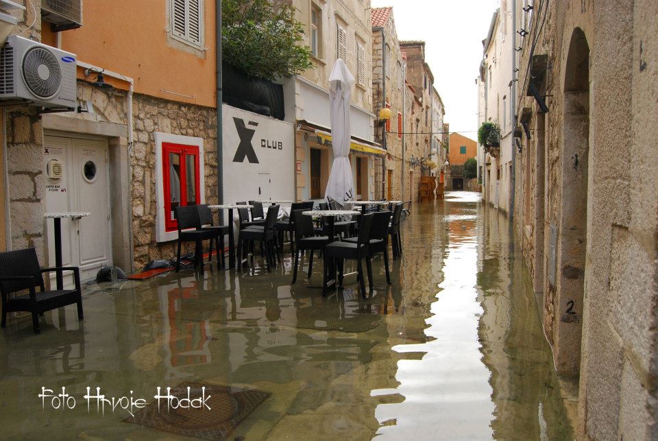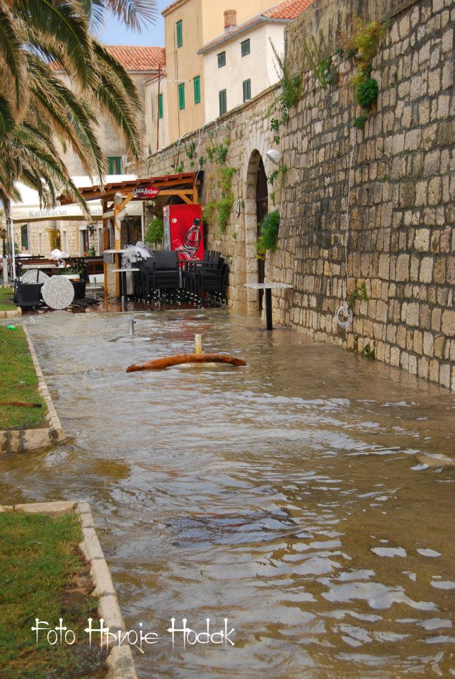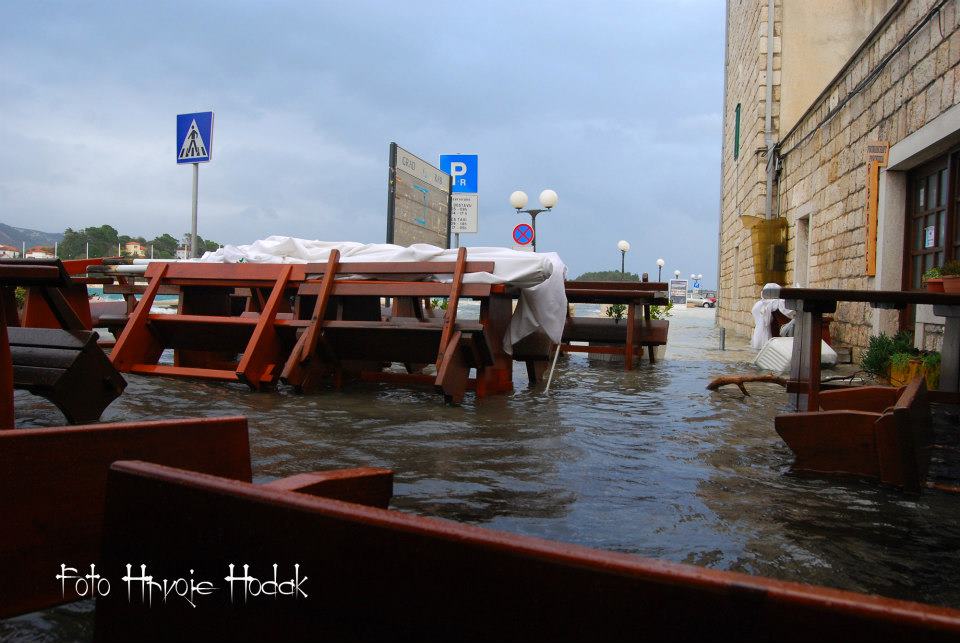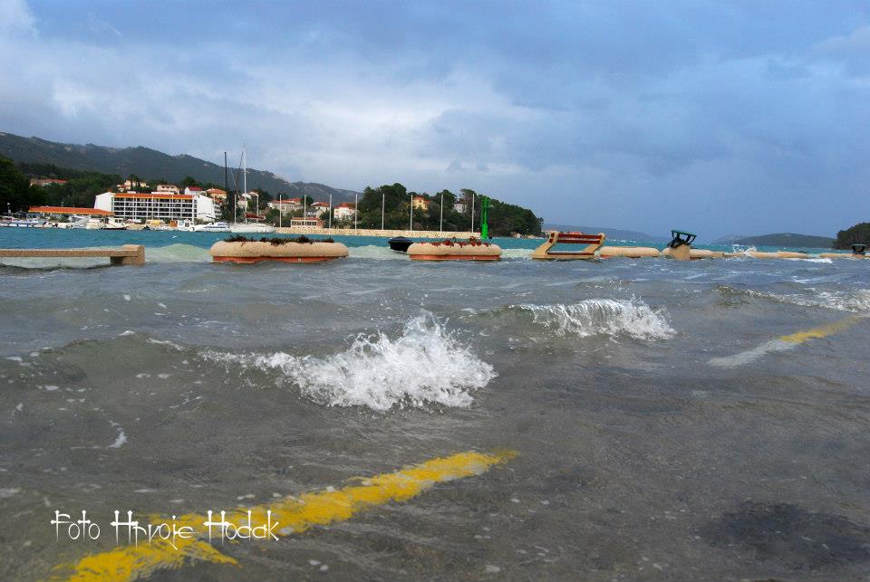 RAB – Blagdansko jutro, 1. studenog na Rabu, nakon olujnog juga, osvanulo je u znaku rijetko viđene plime koja je u velikoj mjeri “potopila” i dijelove staroga grada, nanijevši pritom i velike štete, prvenstveno ugostiteljima i trgovcima koji svoje objekte imaju u blizini rive i u rapskoj Donjoj ulici. Ovakvu razinu plime koja je svoj vrhunac dosegla negdje oko 4 sata ujutro, ne pamte ni najstariji mještani.