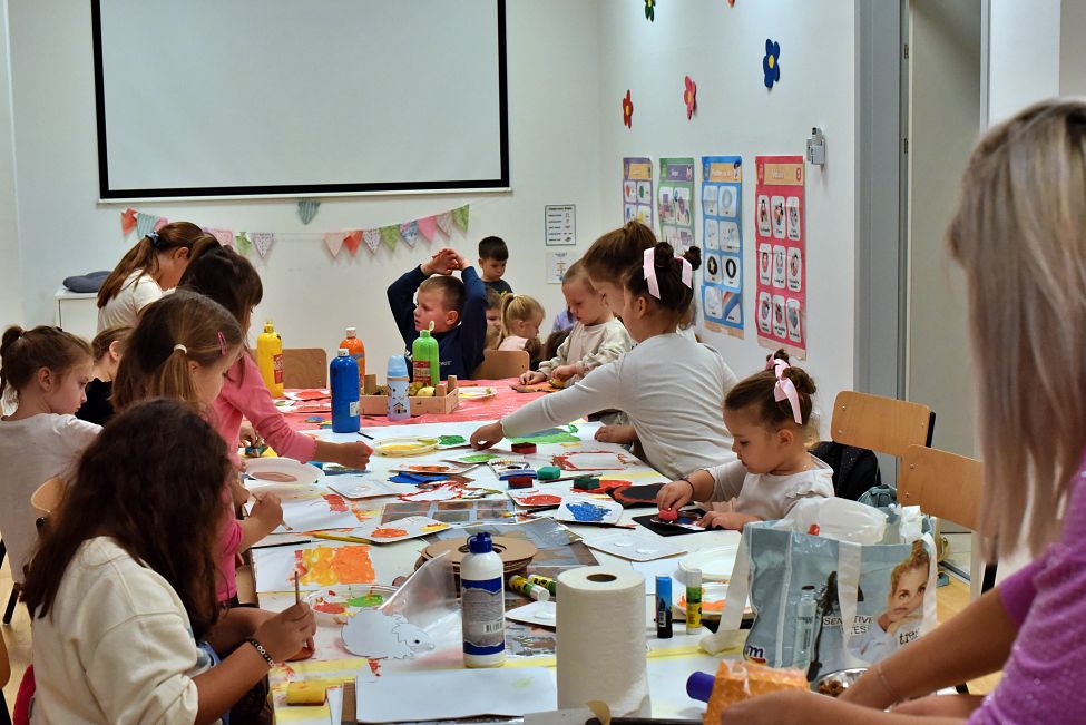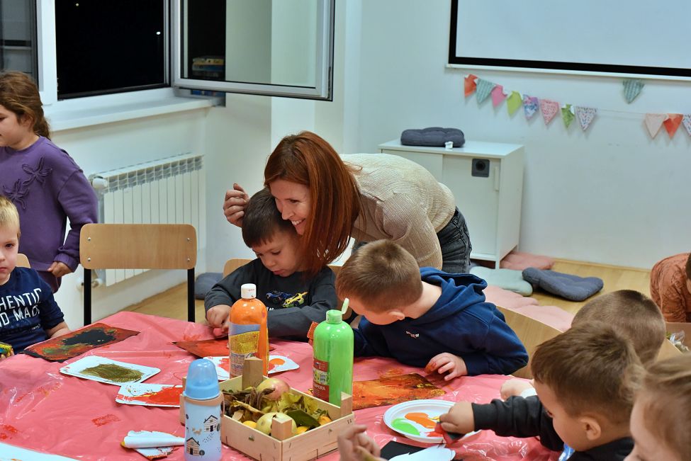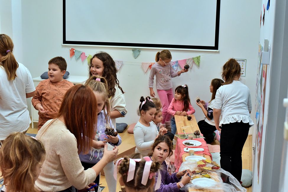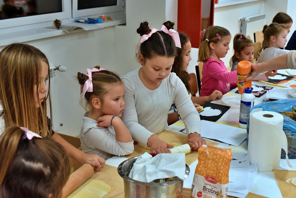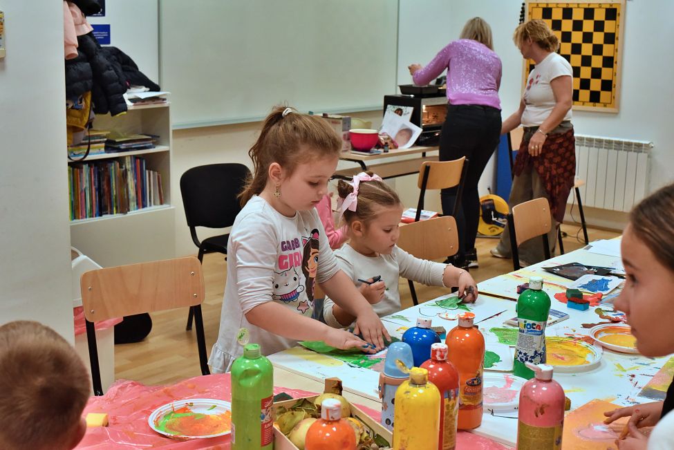 Radionicu su vodile Magdalena Matahlija, Andrea Deželjin i Iva Dumičić. Djeca su prvo poslušala posebno odabranu jesensku priču, a zatim su različitim likovnim tehnikama i vodeći se svojom maštom izrađivala brojne jesenske motive. Osim toga, djeca su radila i ukusne kolače, a kako je bilo na radionici, pogledajte u našoj FOTOGALERIJI.