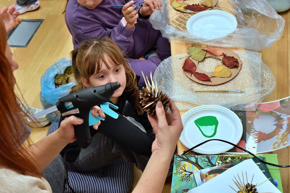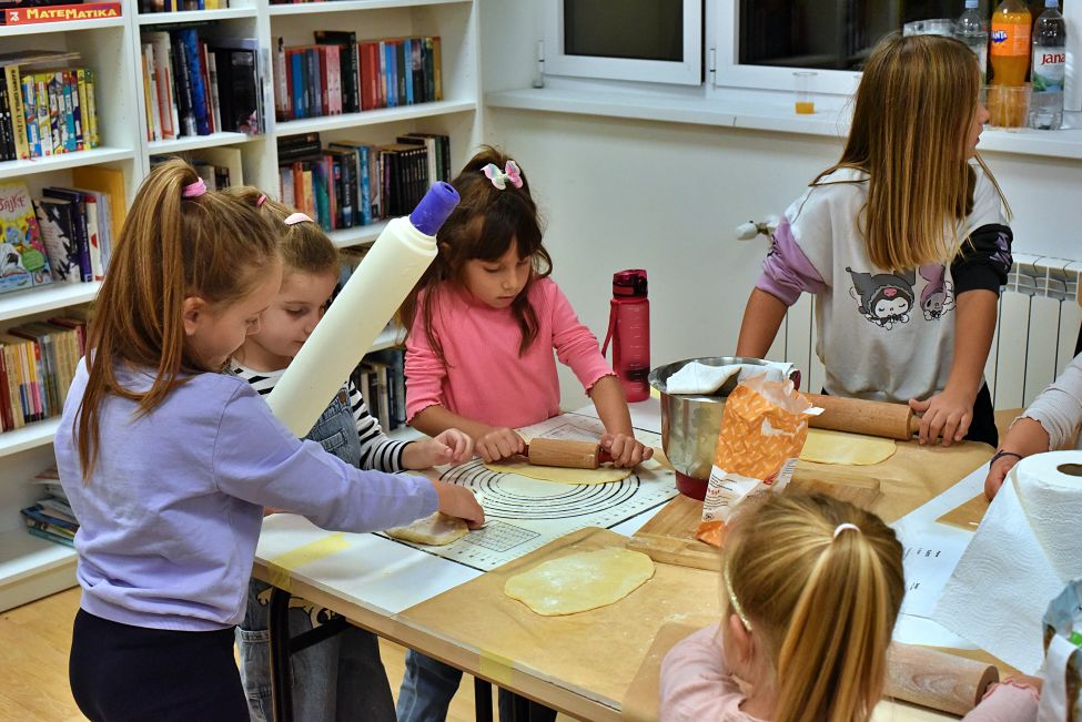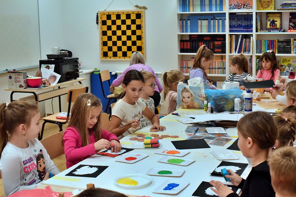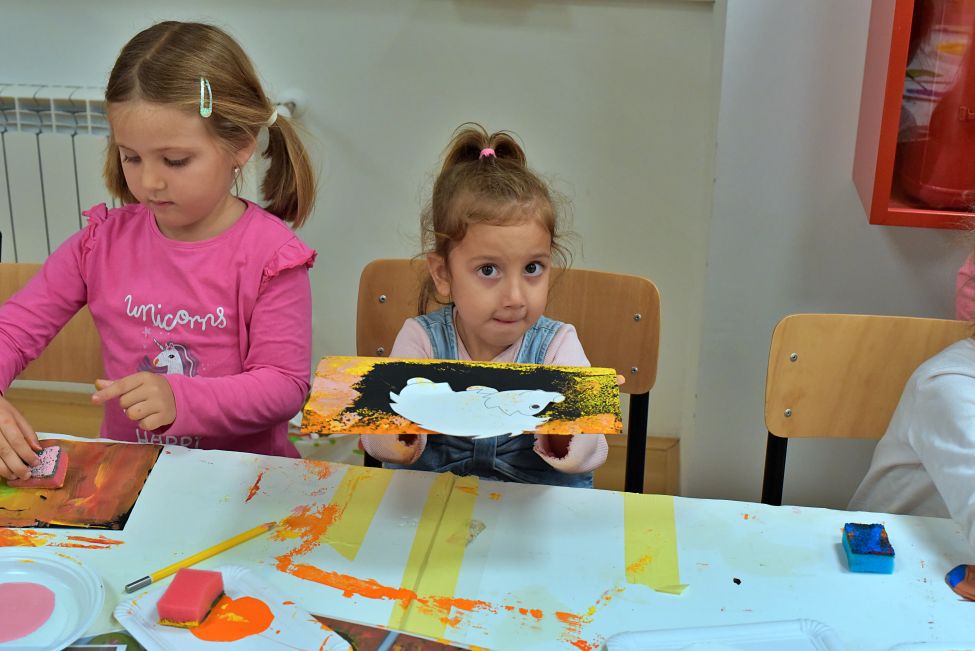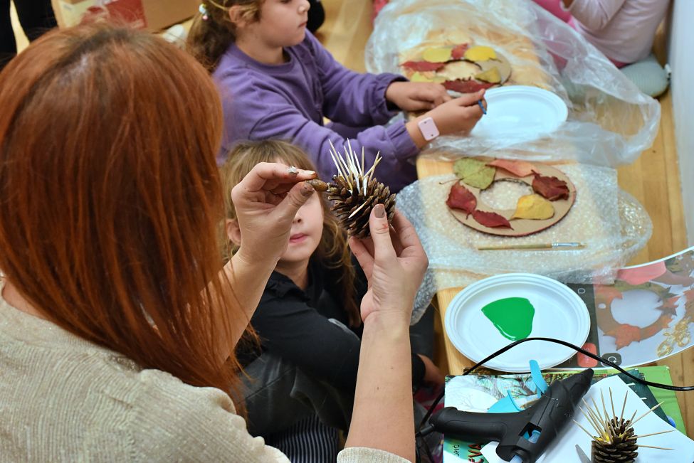 Radionicu su vodile Magdalena Matahlija, Andrea Deželjin i Iva Dumičić. Djeca su prvo poslušala posebno odabranu jesensku priču, a zatim su različitim likovnim tehnikama i vodeći se svojom maštom izrađivala brojne jesenske motive. Osim toga, djeca su radila i ukusne kolače, a kako je bilo na radionici, pogledajte u našoj FOTOGALERIJI.