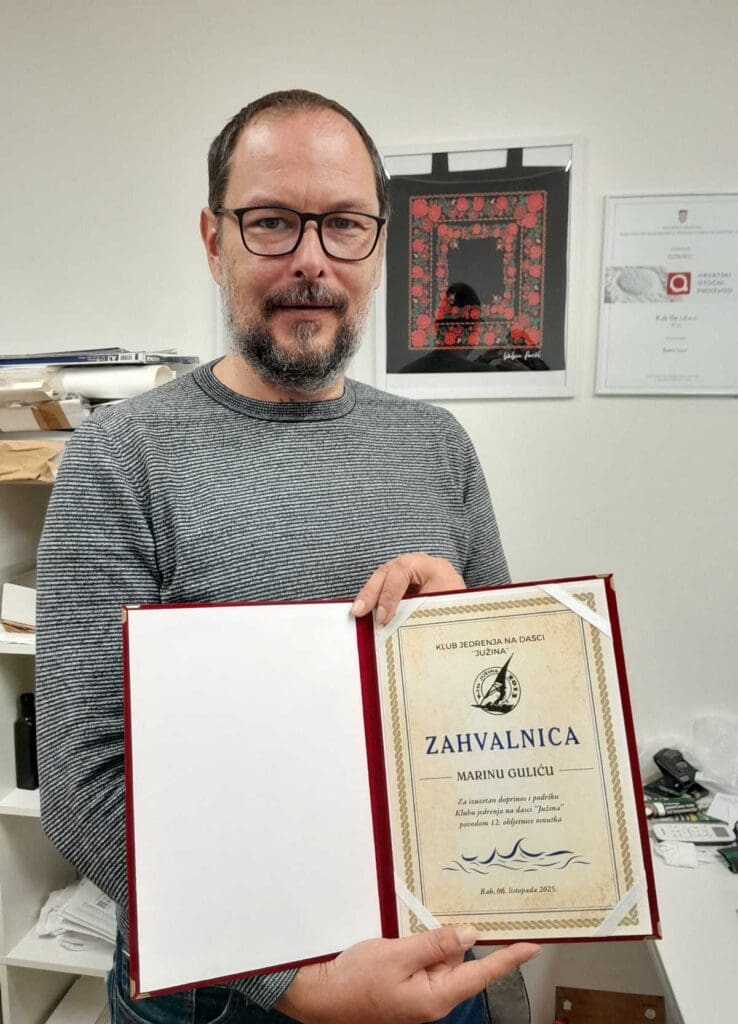 Klub jedrenja na dasci “Južina” dodijelio je posebno priznanje Sanjinu Debeliću za prvu knjigu o jedrenju na dasci izdanu u Hrvatskoj.