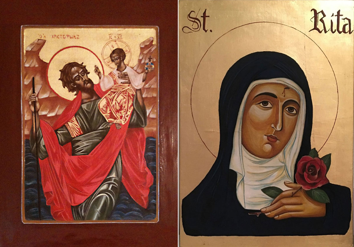 Sv. Kristofor – druga ikona s tečaja u Austriji i sv. Rita – ikona rađena za poklon (2019.)