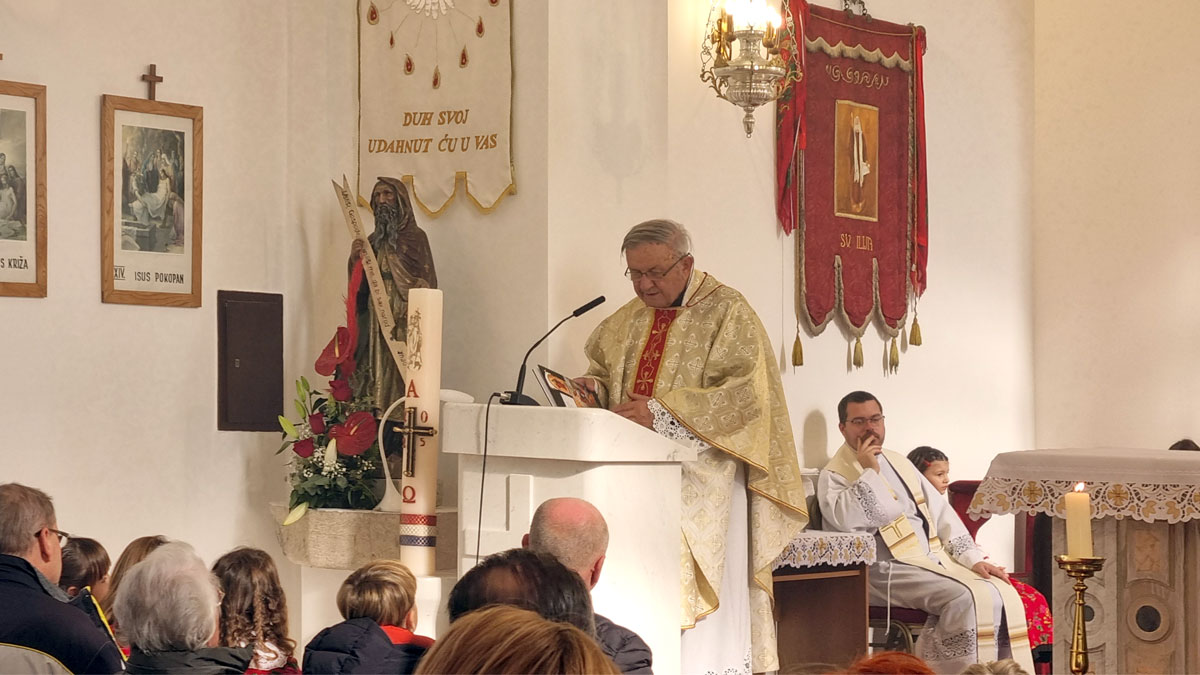 Na početku misnog slavlja župnik domaćin, vlč. Josip Kosić uputio je okupljenim vjernicima prigodne riječi povodom jubileja, dok ih je biskup sve srdačno pozdravio uvodeći ih u misno slavlje riječima: “Ako želimo ovu euharistiju dostojno slaviti, molimo Gospodina da nam oprosti naše grijehe jer ovo je vrijeme egoizma i sebeljublja. Da obitelji budu stabilnije, da roditelji odgajaju djecu u kršćanskom duhu.”