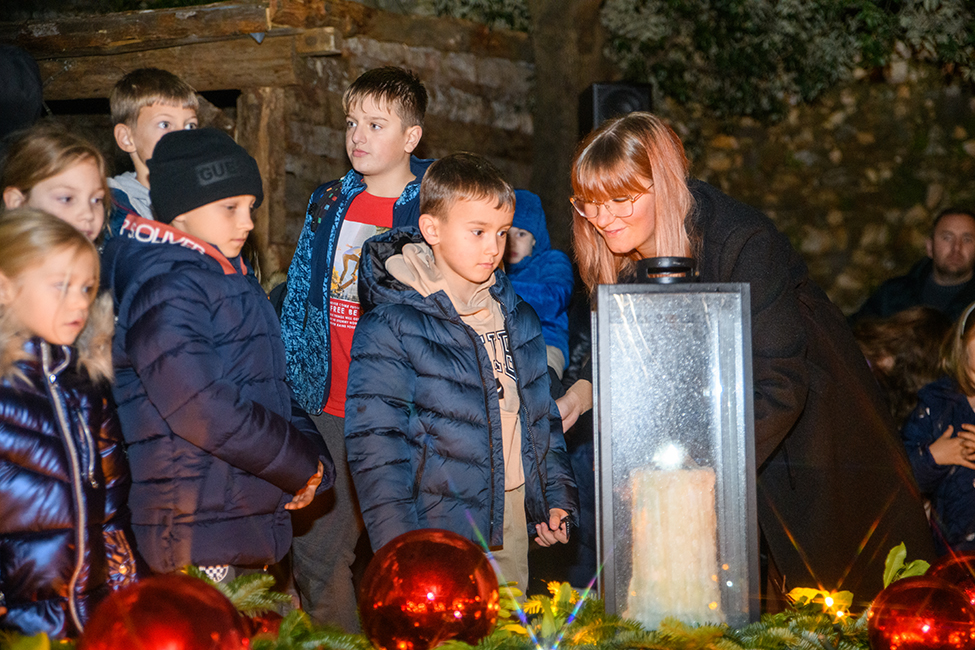 A onda se došlo i do trenutka paljenja prve svijeće (svijeće nade) na adventskom vijencu u Dorki. Svijeću je upalio Lovre Barčić uz pomoć svoje odgojiteljice Eni Kaštelan.