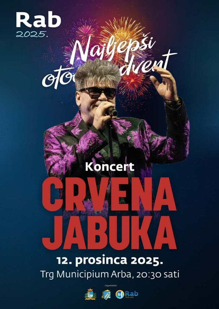 U petak, 12. prosinca 2025. godine, s početkom u 20:30 sati,na adventskom Trgu Municipium Arba održat će se koncert Crvene Jabuke.