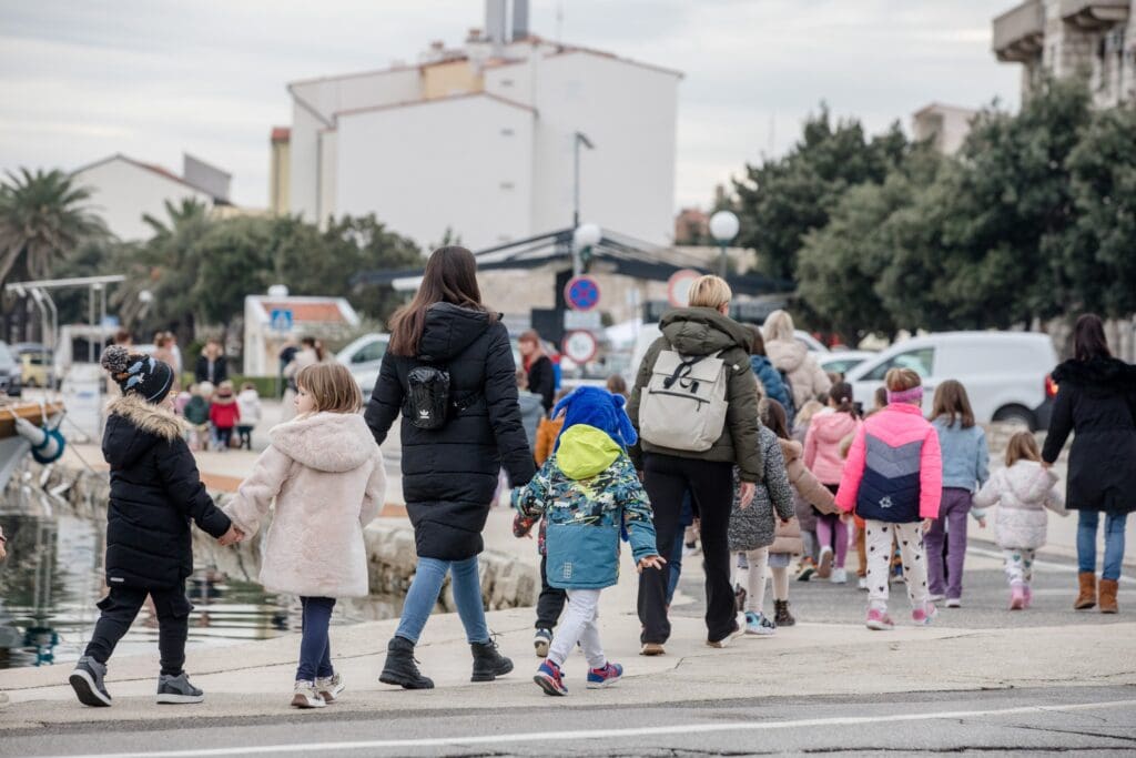 Izvedba u 9:30 bila je za djecu Dječjeg vrtića „Pahuljica“ Rab, a u 10:45 i 12:00 za učenike razredne nastave Osnovne škole Ivana Rabljanina Rab, s time da su na termin u 12:00 mogla doći i ostala zainteresirana dječica.