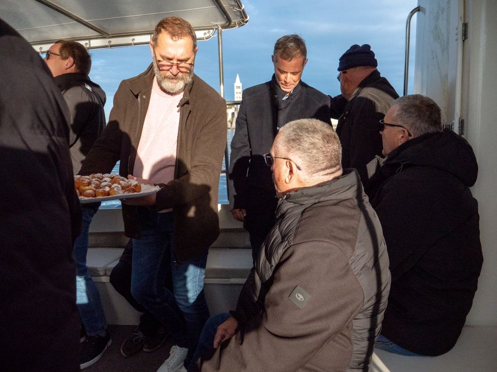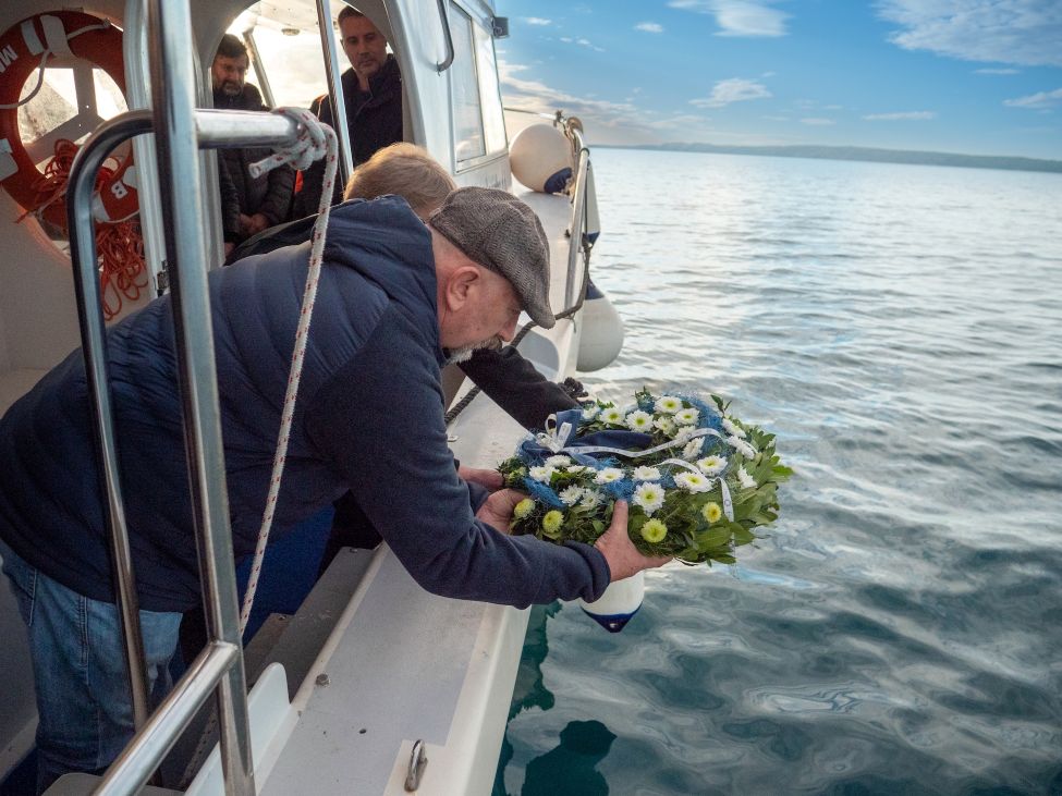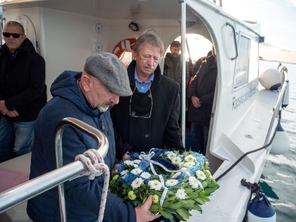 U jutarnjim satima, kapetan Lučke ispostave Rab, Christian Grce, te Milan Tariba, predsjednik Upravnog vijeća Lučke uprave Rab, položili su vijenac u more s broda Rapske plovidbe “Maslina“.