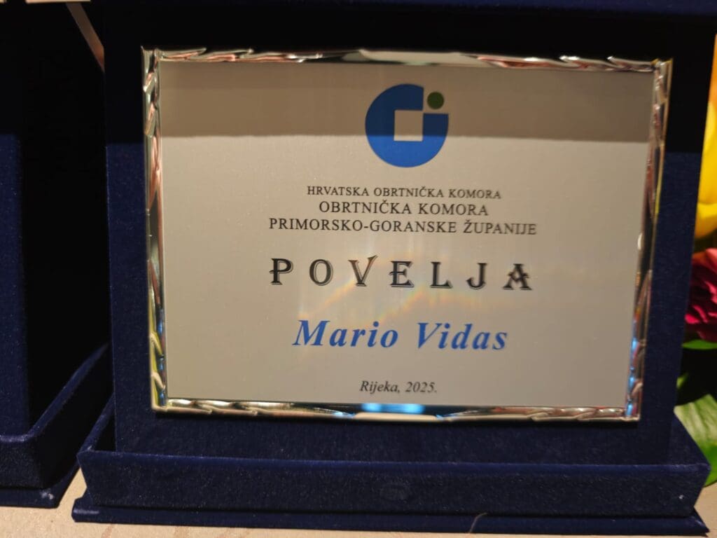 Dobitnik Povelja Hrvatske obrtničke komore za izniman doprinos razvoju obrtništva i obrtničkih institucija u 2025.godini s Raba je Damir Pijaža – Mikelić.