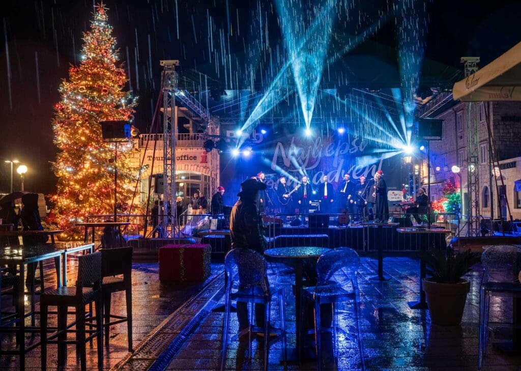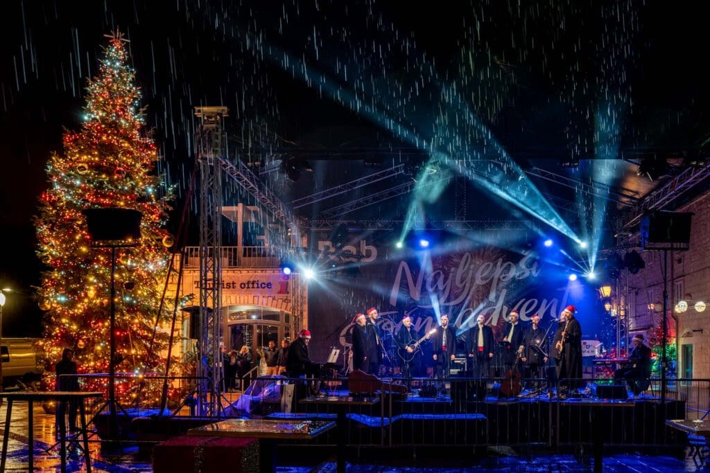Sinoć je na Trgu Municipium Arba, u sklopu programa „Najljepši otočni advent – Rab 2025.“, održan koncert koji je, unatoč neplaniranoj izmjeni izvođača i ne baš povoljnim vremenskim prilikama, publici ponudio zanimljivu glazbenu večer.