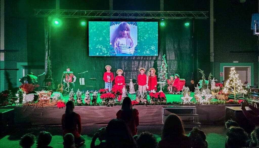 Uslijedila je pjesma “Božićni party”, u izvedbi djece iz odgojno-obrazovne skupine Krijesnice, uz pratnju Marina Pahljine na gitari i Marka Jurića na udaraljkama. Nakon ove pjesme simbolično su se ugasila svjetla koja su osvjetljavala jaslice, čime je dodatno naglašen prijelaz prema završnom, svečanom dijelu programa.