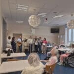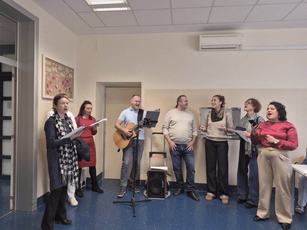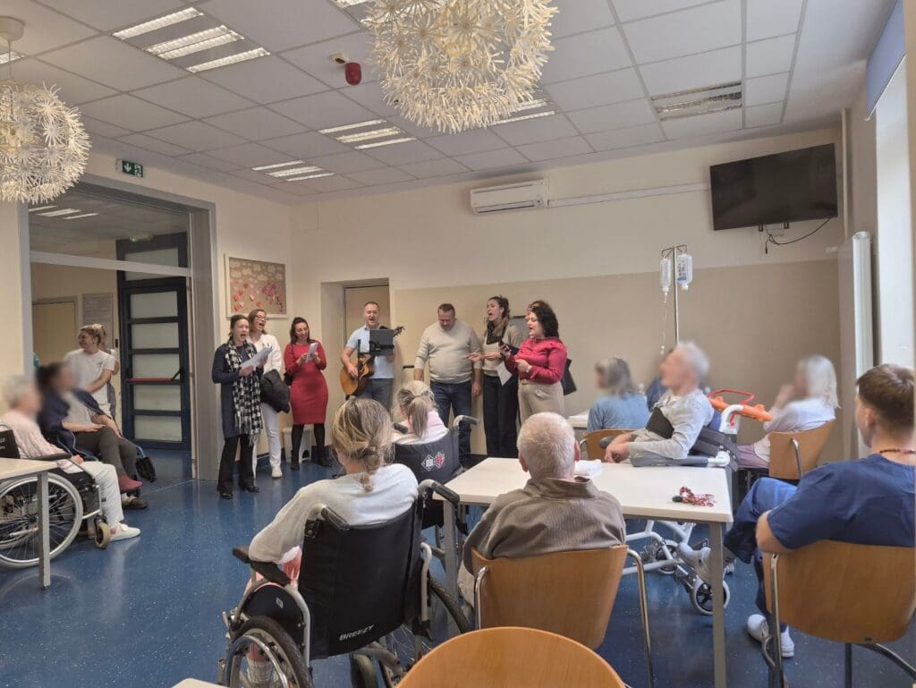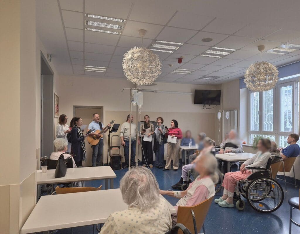 Blagdansku atmosferu dodatno je obogatio posjet Zbora „Kristofor“ Župe Uznesenja Blažene Djevice Marije, koji je prigodnim pjesmama ispunio bolničke prostore i razveselio pacijente. Naročito je to značajno i dirljivo za one koji zbog zdravstvenog stanja nisu u mogućnosti napuštati svoj odjel i sudjelovati u ostalim blagdanskim aktivnostima.