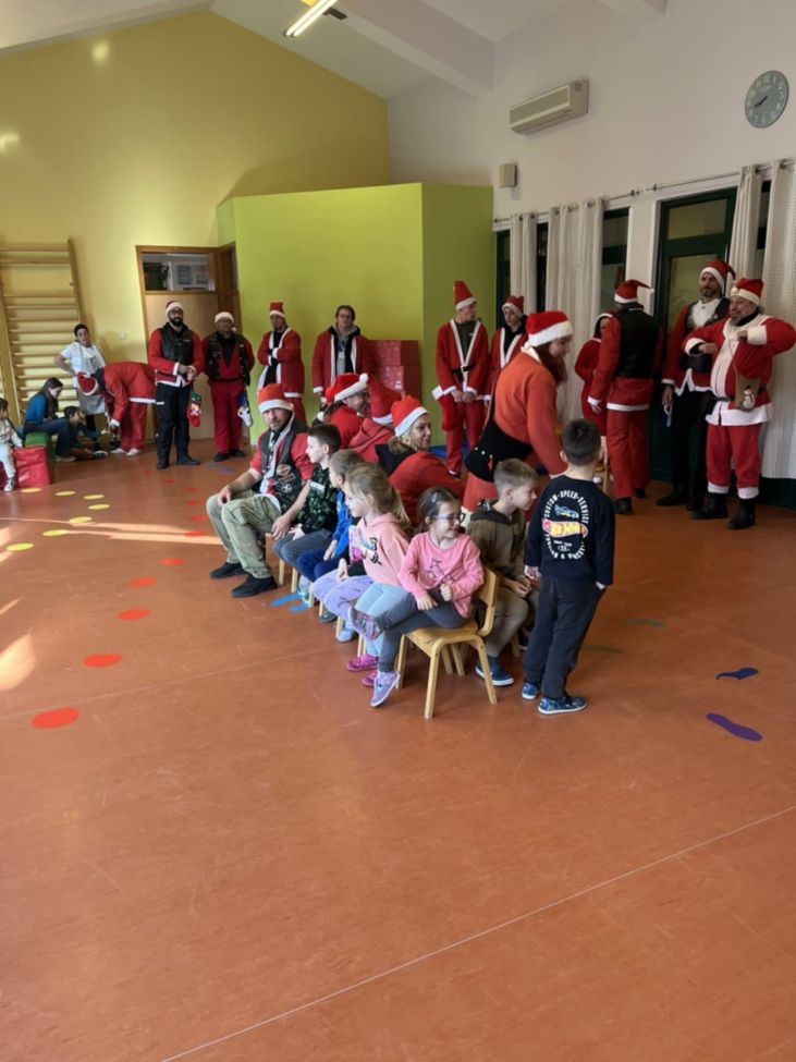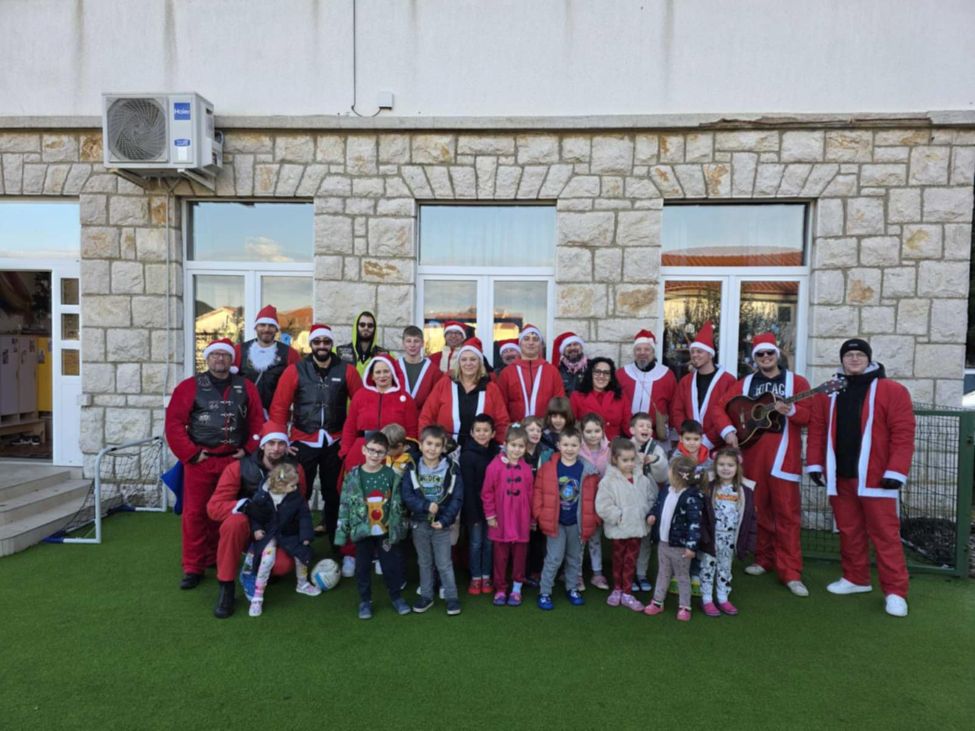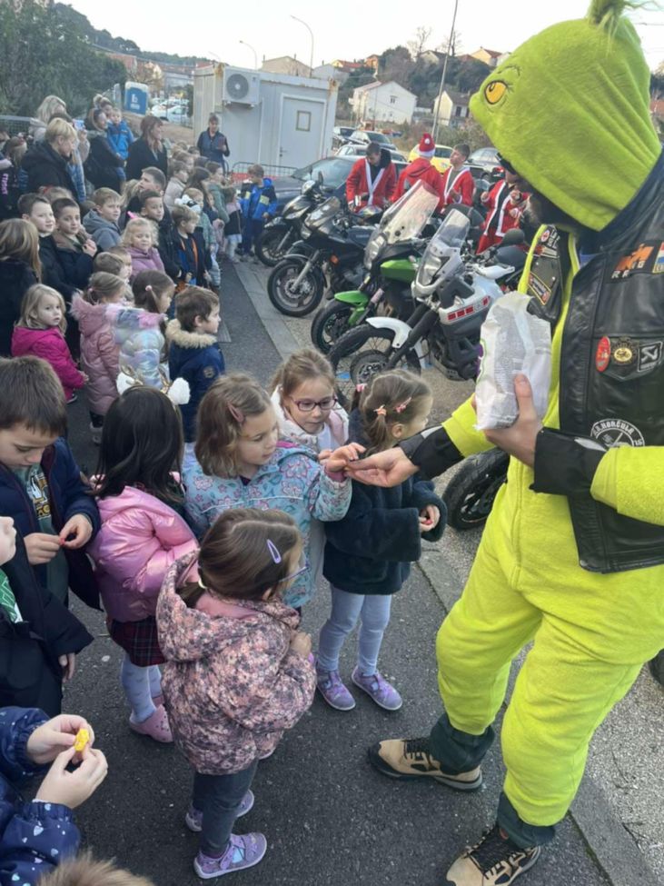 Vesela povorka Moto mrazova obišla je djecu iz Područnih odjeljenja Gornja ulica, Supetarska Draga i Banjol, gdje su ih djeca dočekala pjesmom uz kolačiće i čaj, a svoj blagdanski defile završili su u matičnom objektu vrtića.