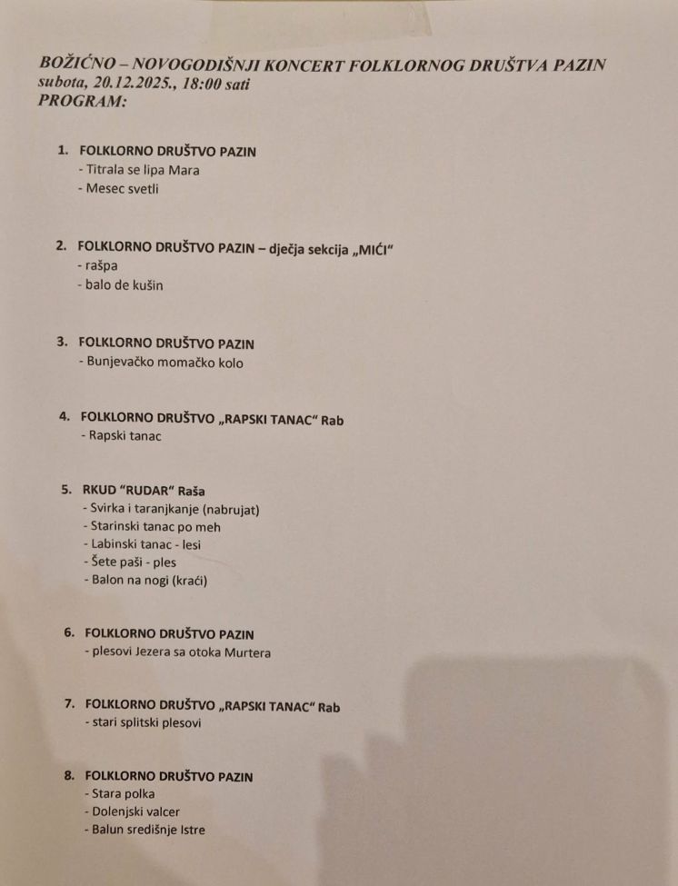 Rapski tanac sudjelovao je 20. prosinca 2025. na tradicionalnom Božićno-novogodišnji koncertu Folklornog društva Pazin. Na koncertu su sudjelovala 3 folklorna društva, koja su publiku provela kroz tradicijsku baštinu različitih dijelova Lijepe Naše. Naši su folkoraši izveli izvorni rapski tanac uz pratnju miha i stare splitske plesove pok. Branka Šegovića.