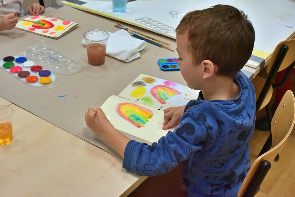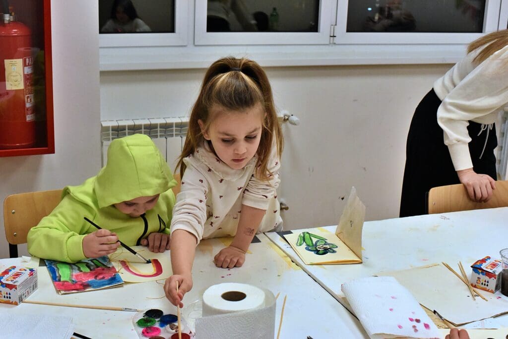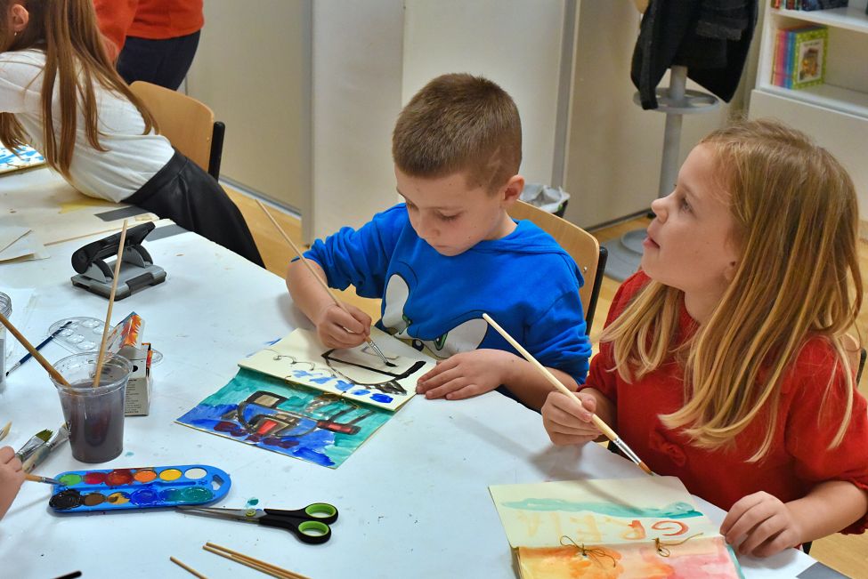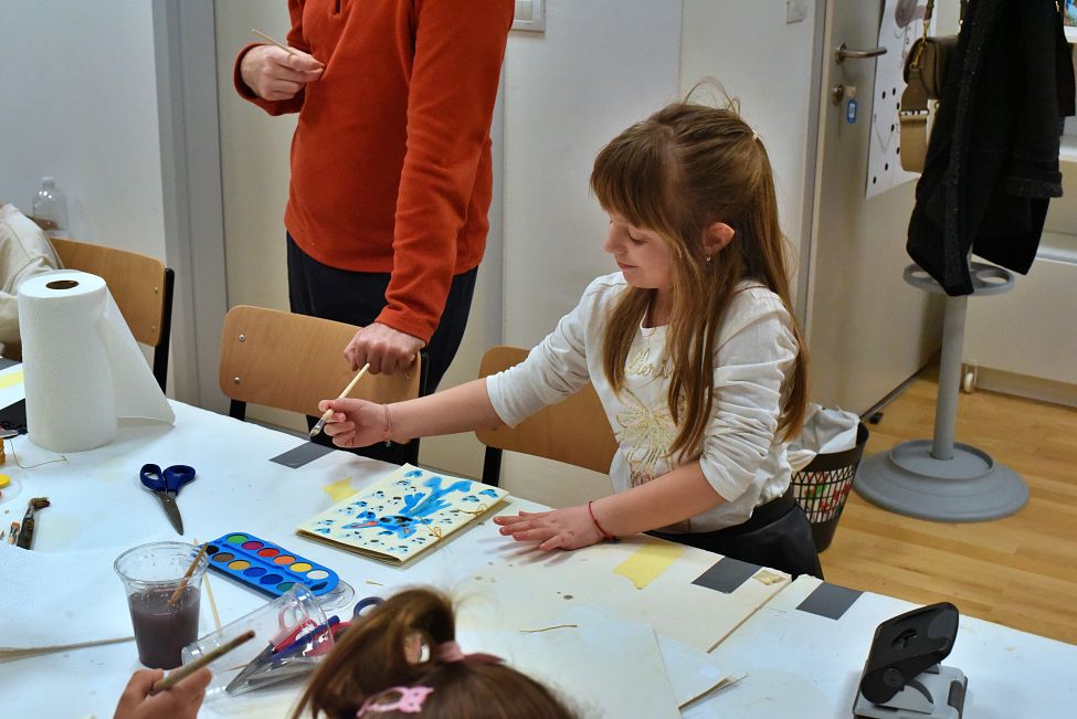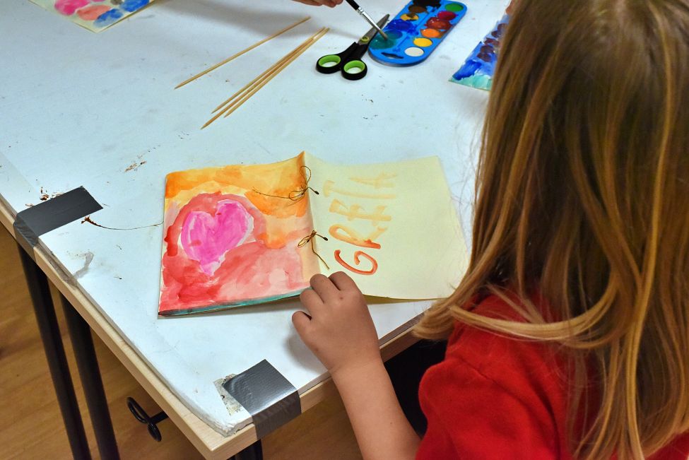 Nakon toga djeca su prionula stvaranju vlastitih malih knjiga oslikavši, raznim tehnikama, vanjske i unutarnje korice budućih „knjiga“ koje će moći, po vlastitu izboru, tijekom idućih dana dovršiti kod kuće.