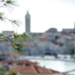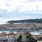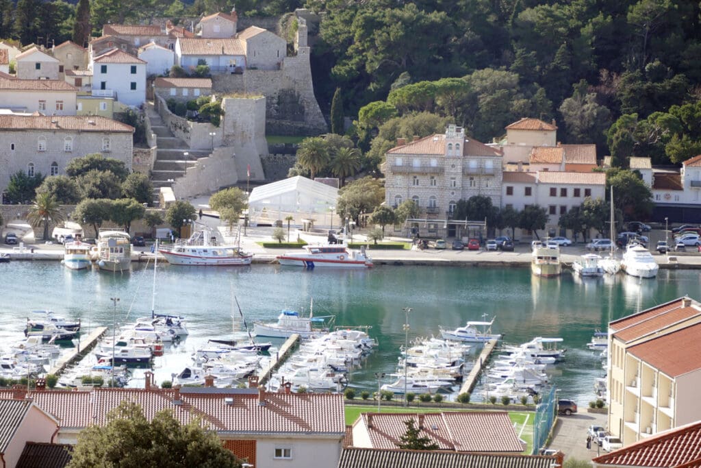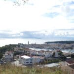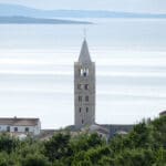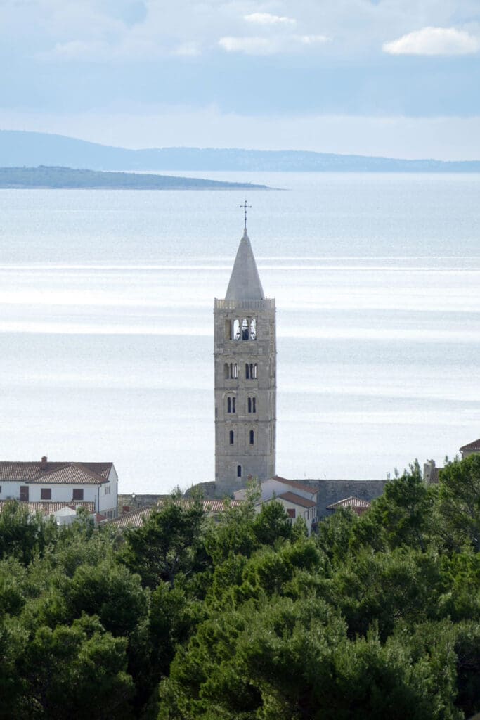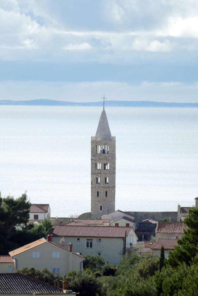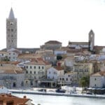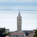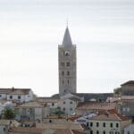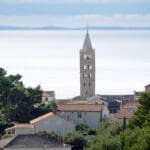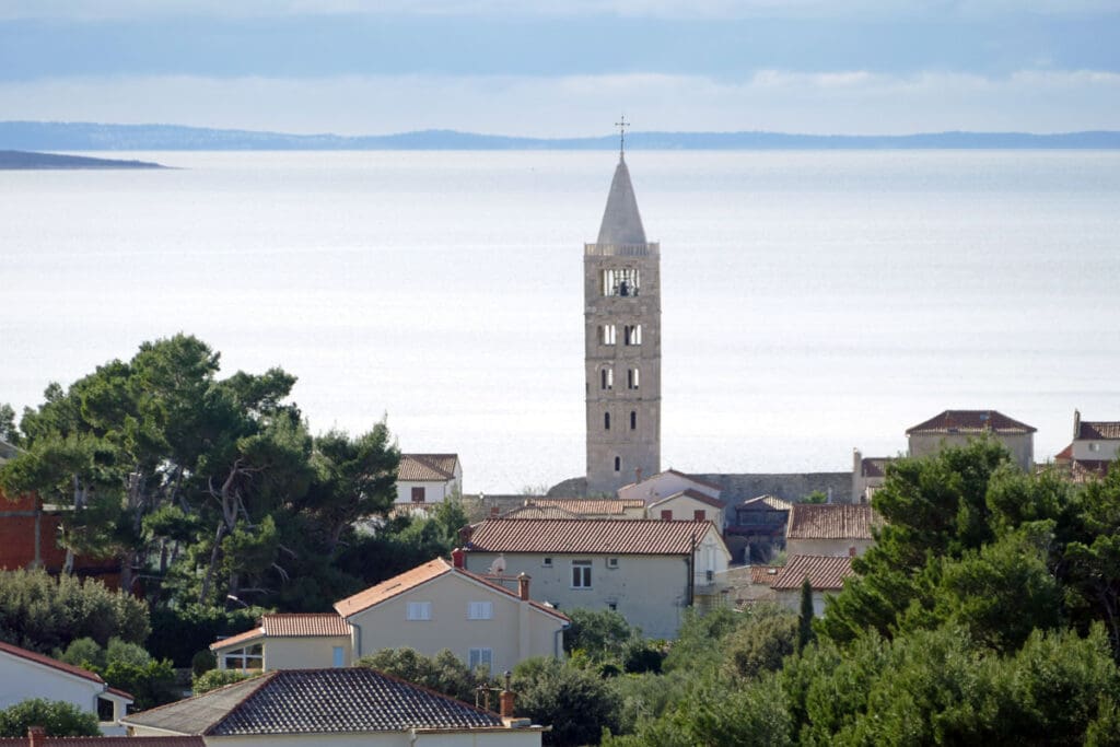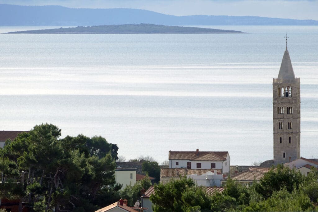 Drugi niz fotografija hvata povijesnu jezgru grada u mekanom, sjeniranom poslijepodnevnom svjetlu. Krovovi, zvonici i uske ulice, Trg Municipium Arba, pa i barke u luci, djeluju prisno i toplo, dok pogled prema pučini, prema Dolfinu i još dalje prema Lošinju i Cresu donosi osjećaj otvorenosti. More je mirno, gotovo meditativno, kao modri produžetak grada.
