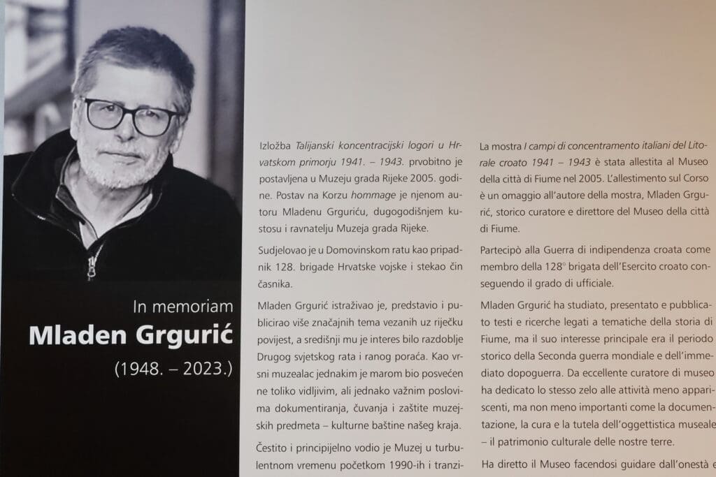 Izložba Muzeja grada Rijeke postavljena je u suradnji sa Židovskom općinom Rijeka i Hrvatskim kulturnim domom na Sušaku. Temelji se na knjizi Mladena Grgurića Talijanski koncentracijski logori u Hrvatskom primorju 1941. – 1943., a za ovu je prigodu izložbeni postav prilagodile Vesna Rožman i Sabrina Žigo. Donosi dokumente, fotografije i interpretacije koje svjedoče o represiji fašističke Italije nad civilnim stanovništvom Hrvatskog primorja i Gorskog kotara.