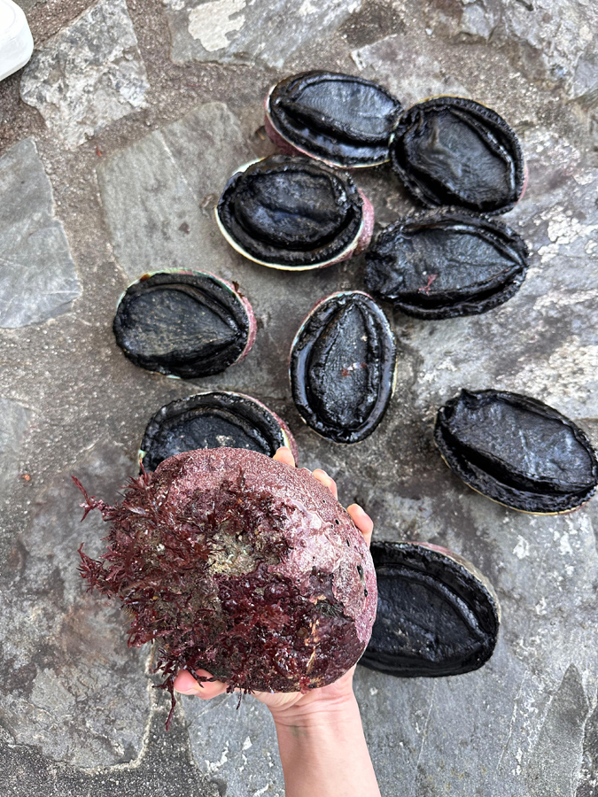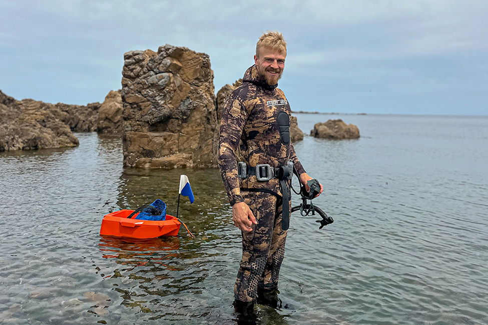 Kod kuće, na Novom Zelandu, osjećaj je poprilično drugačiji. Ima mnogo izvrsnih lokacija na maloj udaljenosti vožnje, često uz kratko pješačenje kako bi se izbjegla prelovljena područja – što dalje hodaš uz stjenovitu obalu, to je manja vjerojatnost da je područje nedavno bilo ribljeno. Kada uđeš u vodu i zaplivaš prema grebenima, okružen si šumama kelpa i stjenovitim područjima punima života, poljima pāua školjki, što je naša autohtona vrsta abalonea i lokalna delicija s minimalnom zakonskom veličinom od 125 mm, kao i jastozima skrivenima u špiljama i ispod stijena.