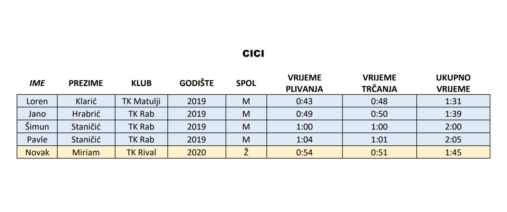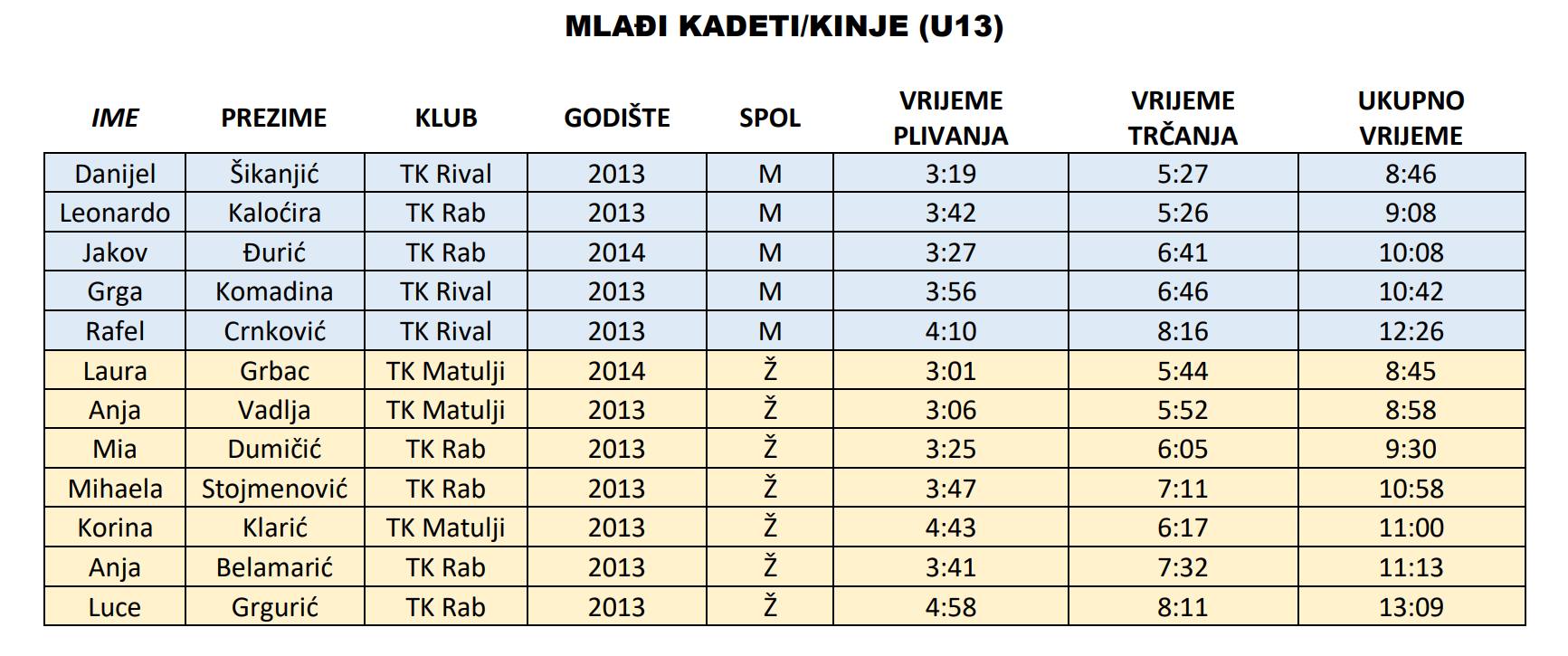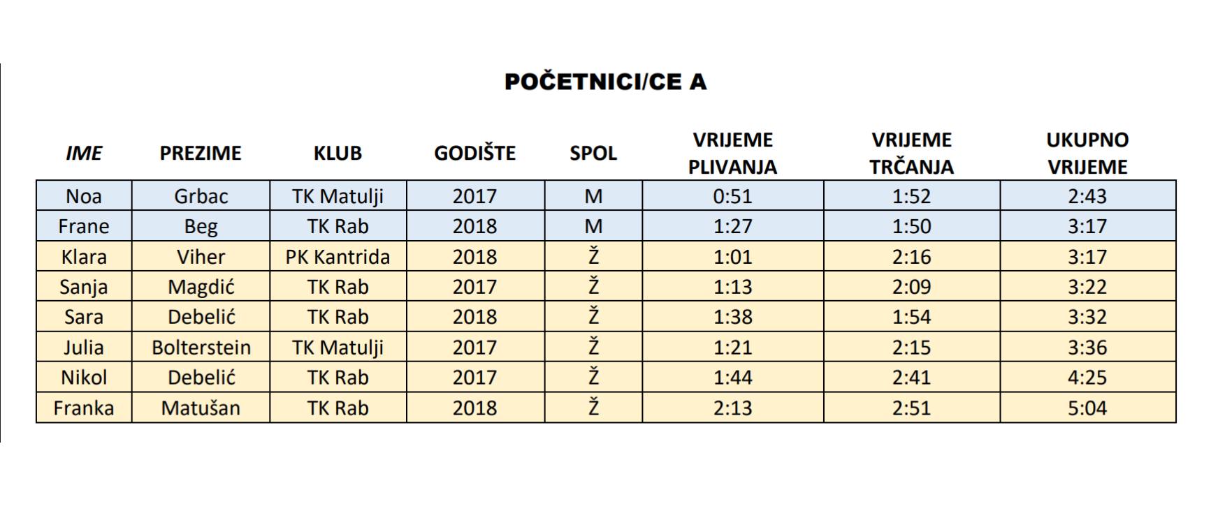 Triatlon klub Rab s ponosom se osvrće na nastup svojih članova na Stadionu Kantrida u Rijeci, gdje je održano 1. kolo Multisport lige PGŽ, ujedno i Prvenstvo županije u akvatlonu.