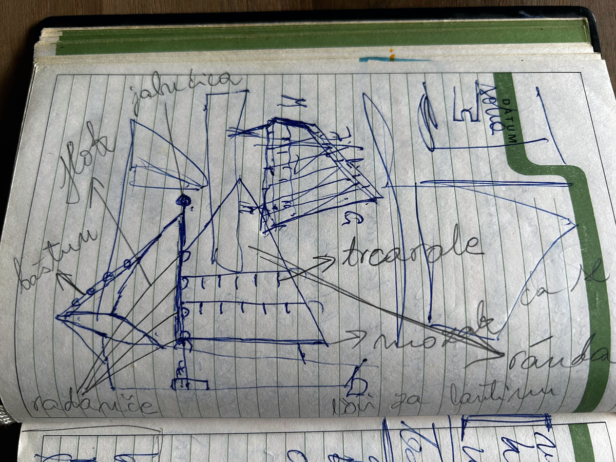 Franeta Kordić je nacrtao brod u bilježnicu kako bi objasnio nazive jedra | FOTO: Božidarka Šćerbe Haupt