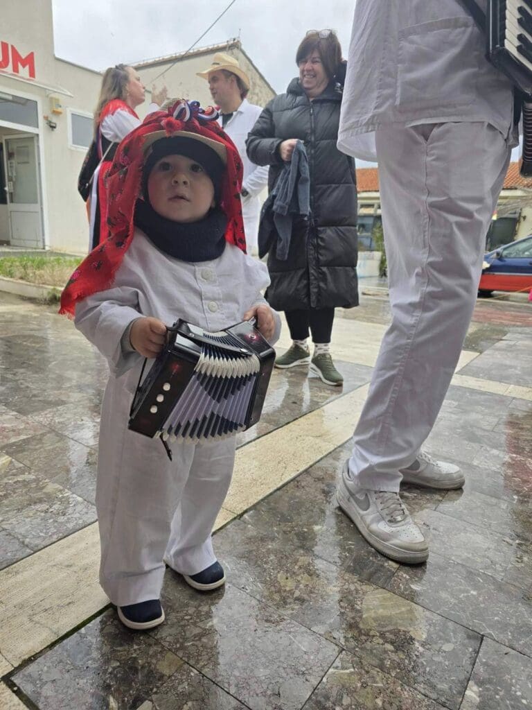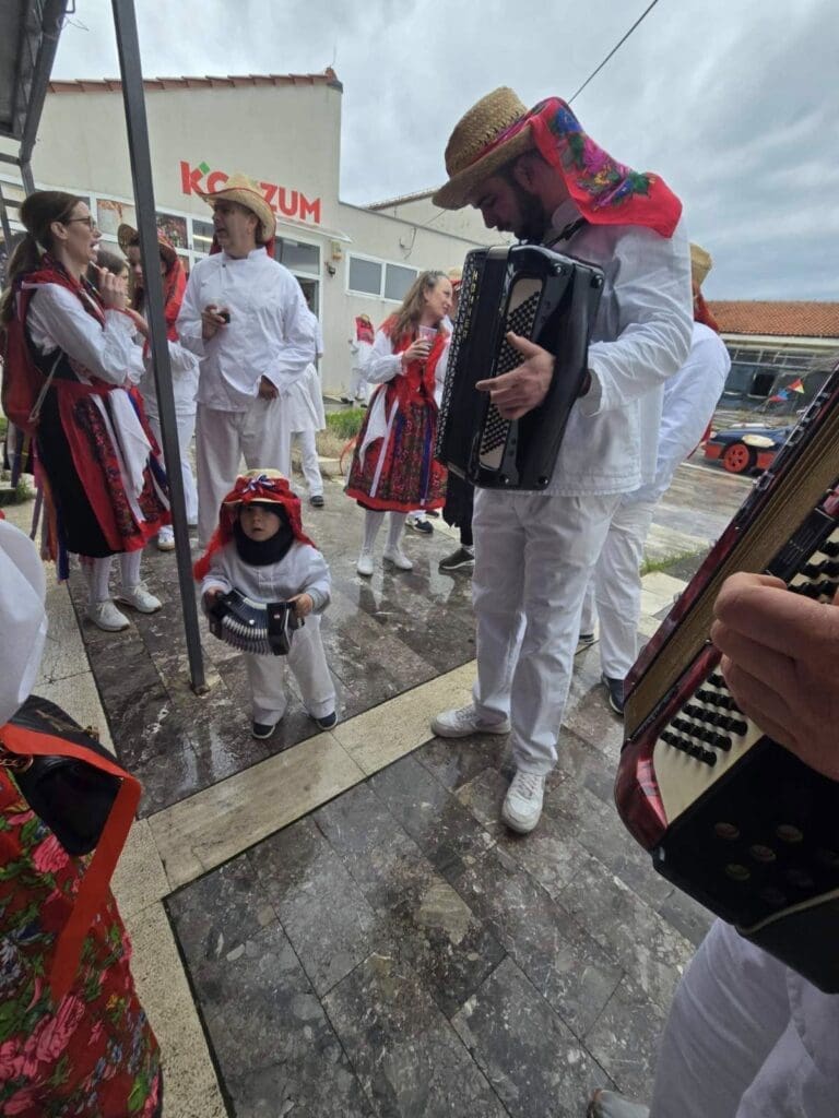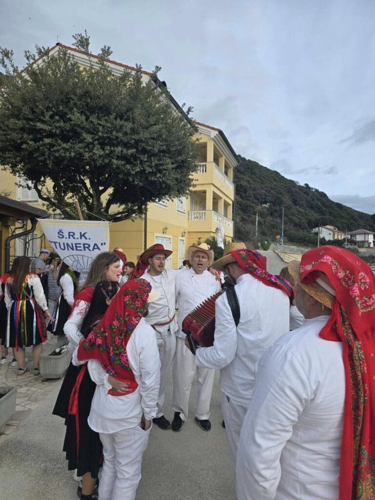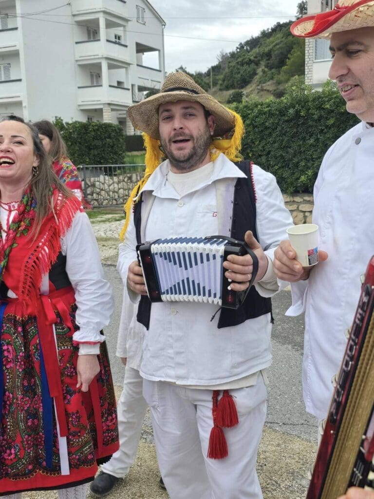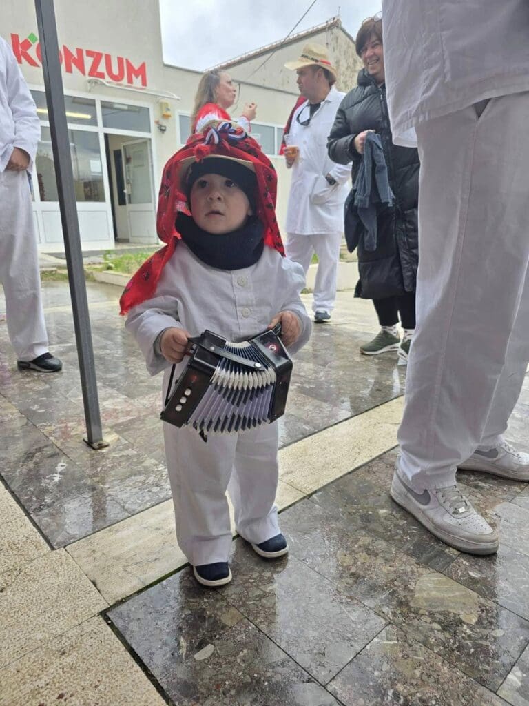 Zahvaljujemo se našim domaćinima, koji su unatoč kiši, vrijedno pripremali stolove za počastiti naši “Beli maškari”! Cijeli dan smo se zabavili, narugali, našalili, ali i pokazali našoj djeci kako se tradicija ne zaboravlja! Vidimo se i dogodine, u što većem broju i s osmijehom na licu!”