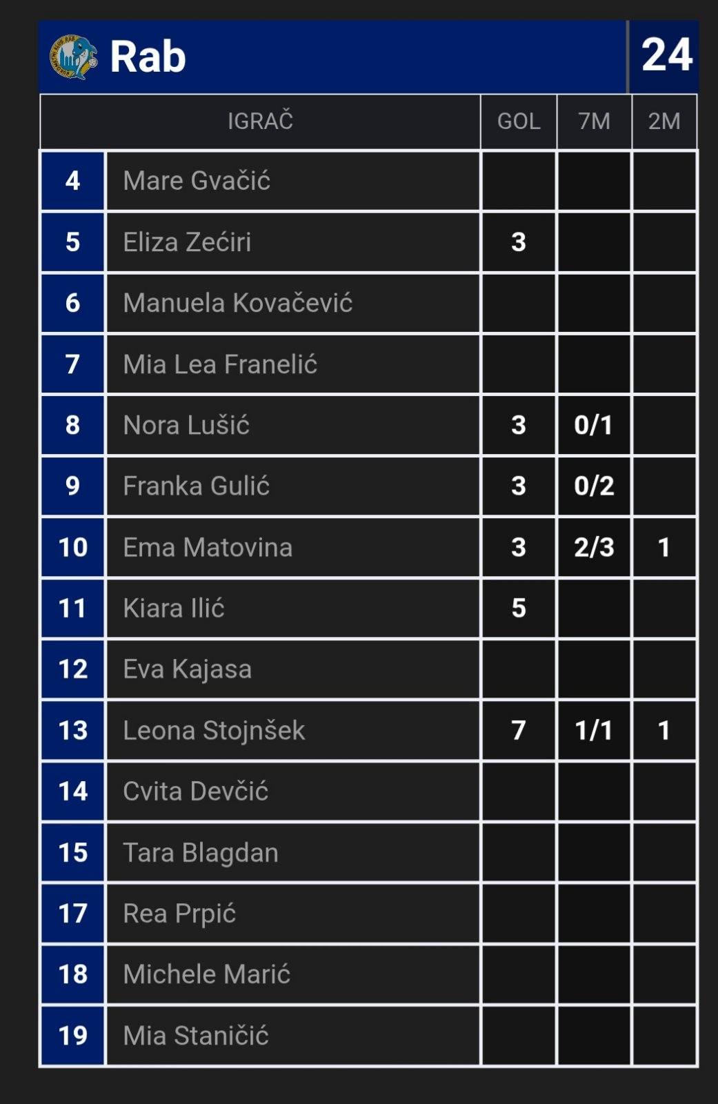 Djevojčice U14 nastupile su u Omišlju, gdje su u sklopu 1. Hrvatske rukometne lige odigrale dvije utakmice i ostvarile dvije važne pobjede. U prvom susretu protiv ekipe Senie igračice Raba od samog su početka pokazale čvrstinu i visoku razinu koncentracije. Već u prvoj minuti došle su do vodstva, koje su tijekom cijele utakmice postupno povećavale. Susret je završio uvjerljivom pobjedom Raba, uz iznimno raspoložen napad i pogotke postignute sa svih pozicija.