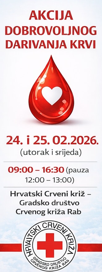 Akcije dobrovoljnog darivanja održat će se 24. i 25. veljače, u utorak i srijedu, u prostoru GDCK-a Rab. Druženje je u Bloku ovaj petak od 20 sati.