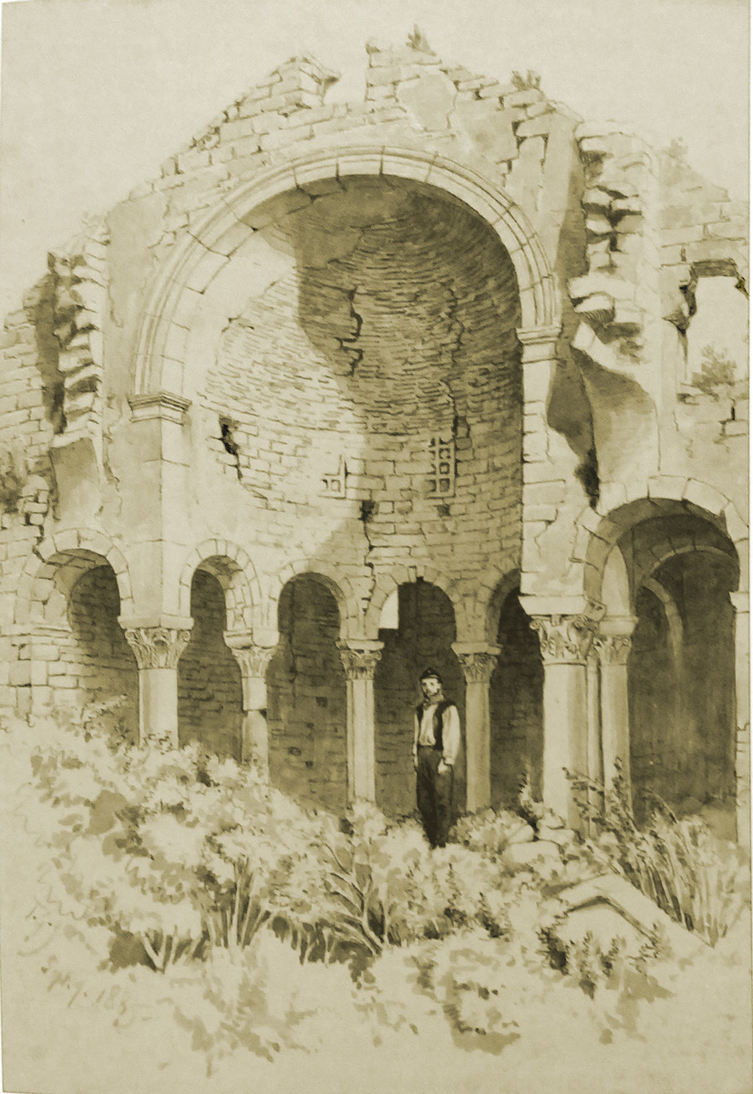Ovaj je crtež posebno važan jer je rušenje ovog spomenika nastavljeno i dalje, pa nam pojedine fotografije iz dvadesetih godina 20. st. dokumentiraju stanje s već porušenim trijumfalnim lukom, a do devedesetih godina nije bilo gotovo više niti vanjskoga plašta apside.